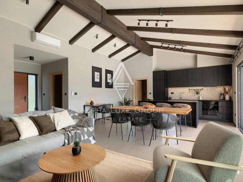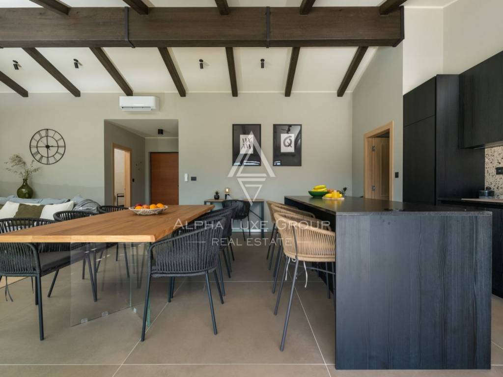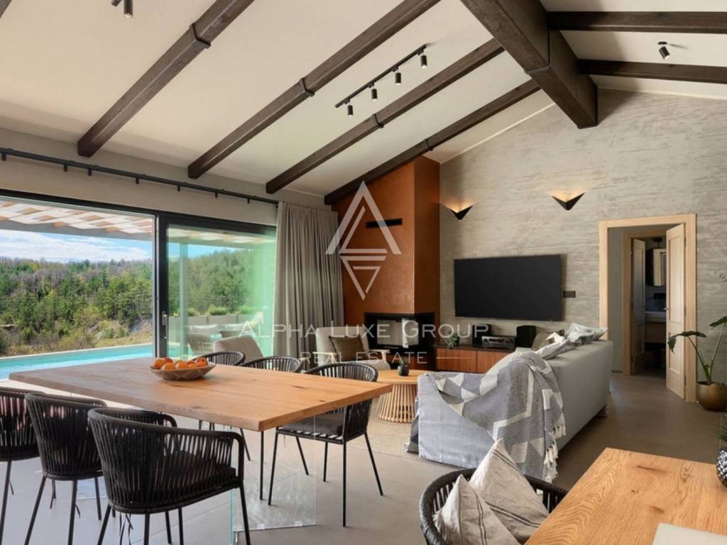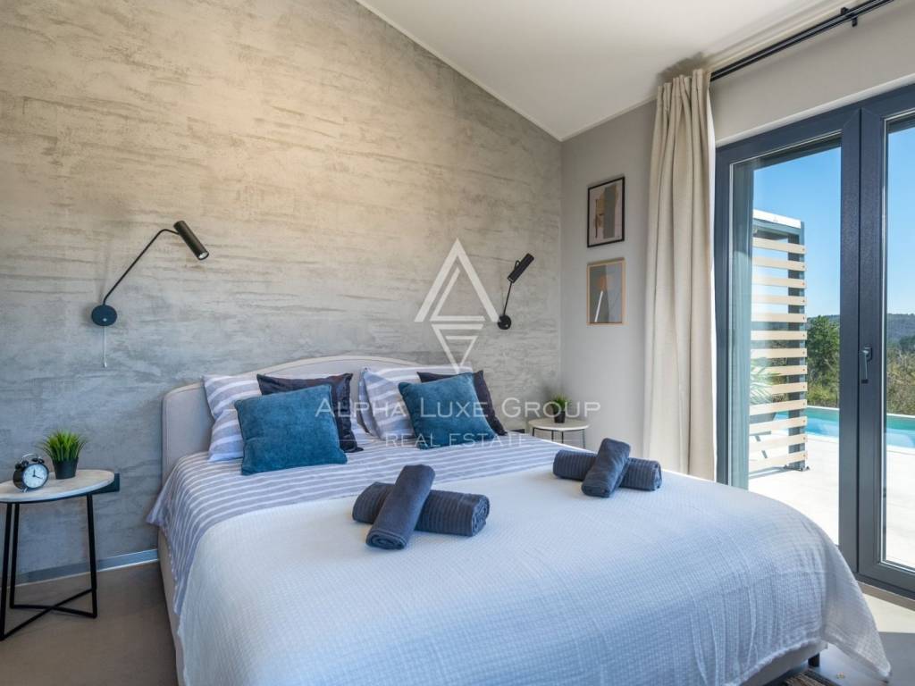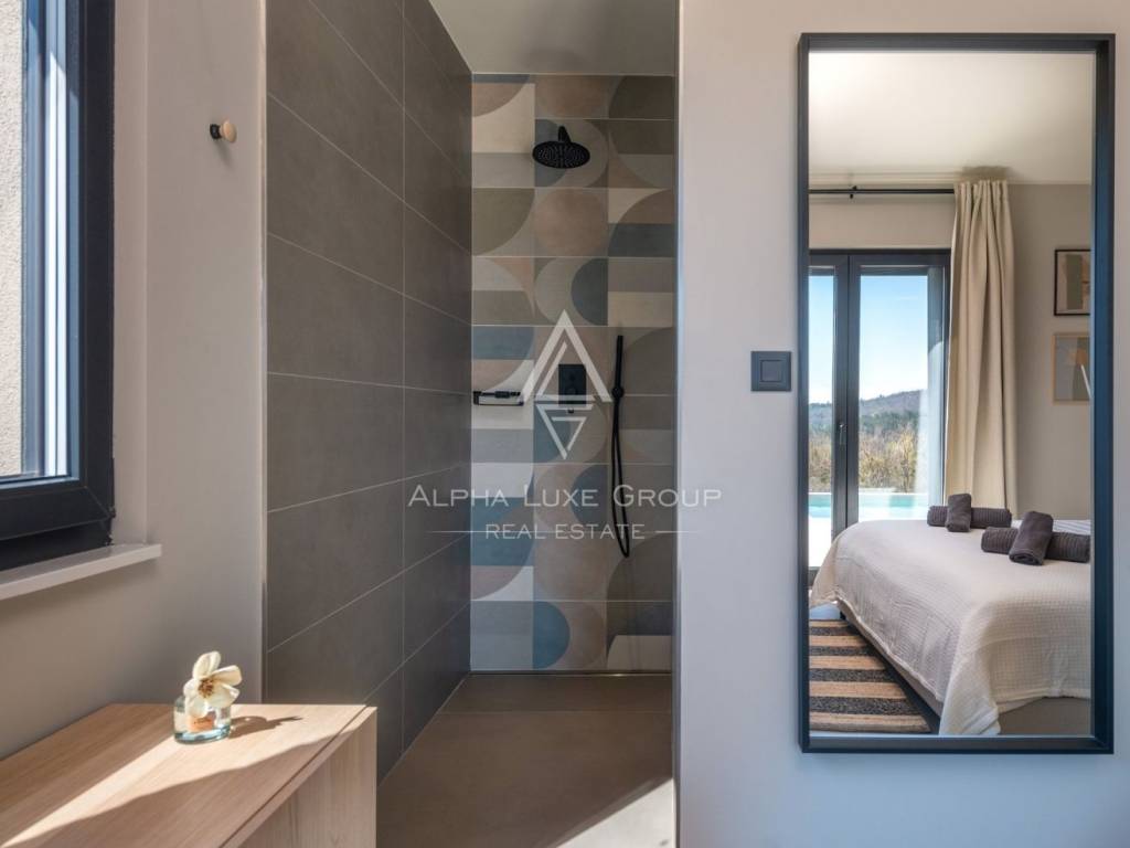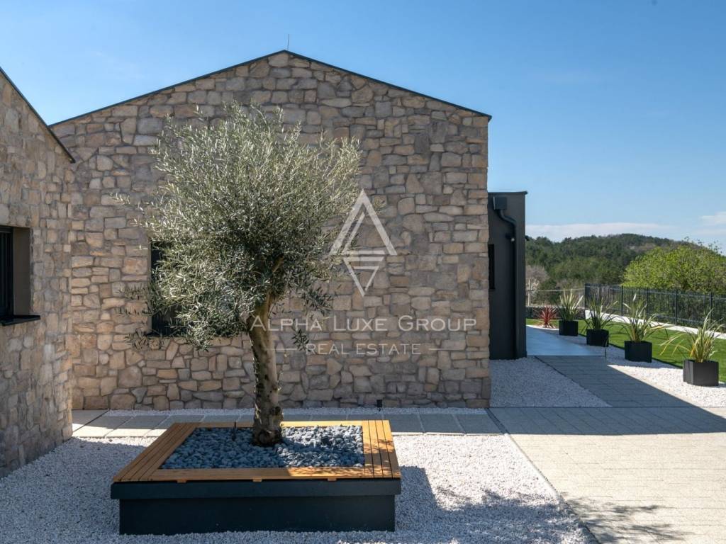 This modern new house is located in the surroundings of the smallest city in the world - HUM, which will charm you with its charm and romance. Half an hour away is Opatija, a famous tourist center that dominates these areas with its elegance and sophistication, with excellent restaurants, a wonderful promenade by the sea and landscaped gardens. Among other tourist attractions, we single out the Učka Nature Park and the 7 waterfalls trail, as well as the fact that the mentioned region is a popular enogastronomic destination for all lovers of good food and wine.