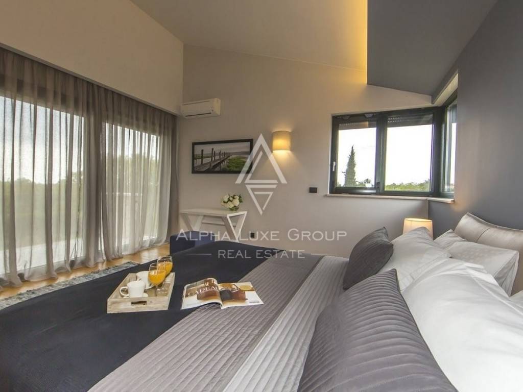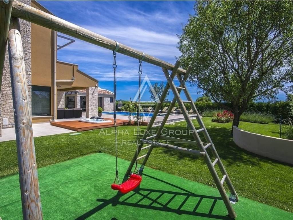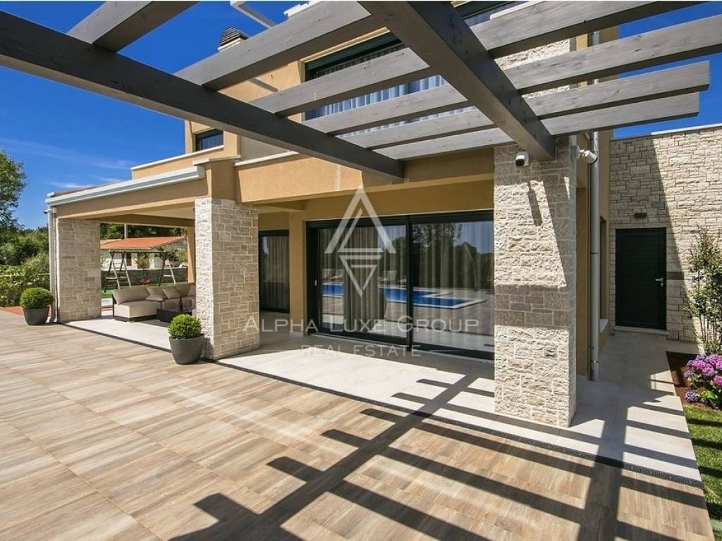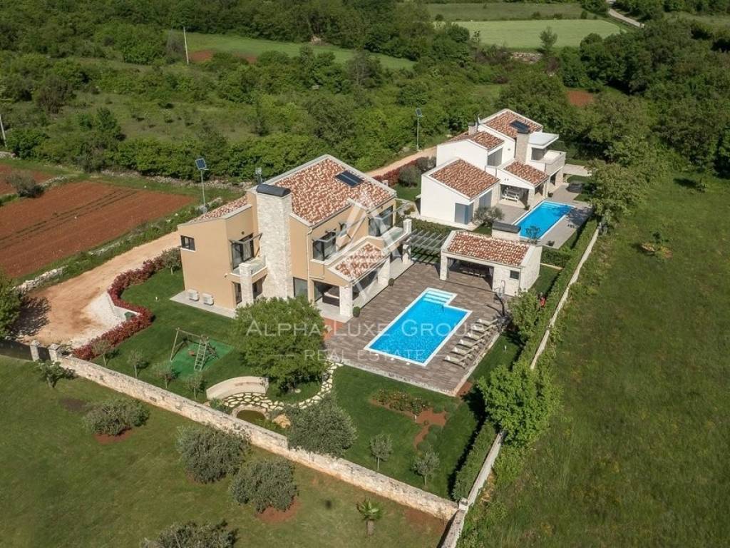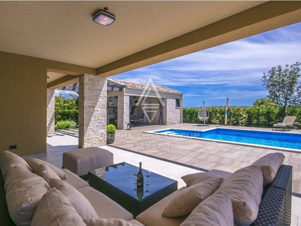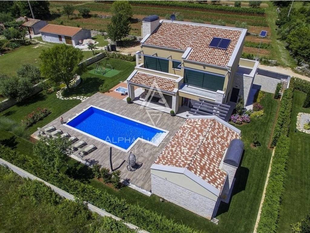 A contemporary villa surrounded by serene nature is now available for sale, located just 15 km from the sea and the vibrant town of Sveti Lovreč. This luxurious home offers a spacious layout and premium amenities, making it an excellent choice for a family retreat or investment property.
