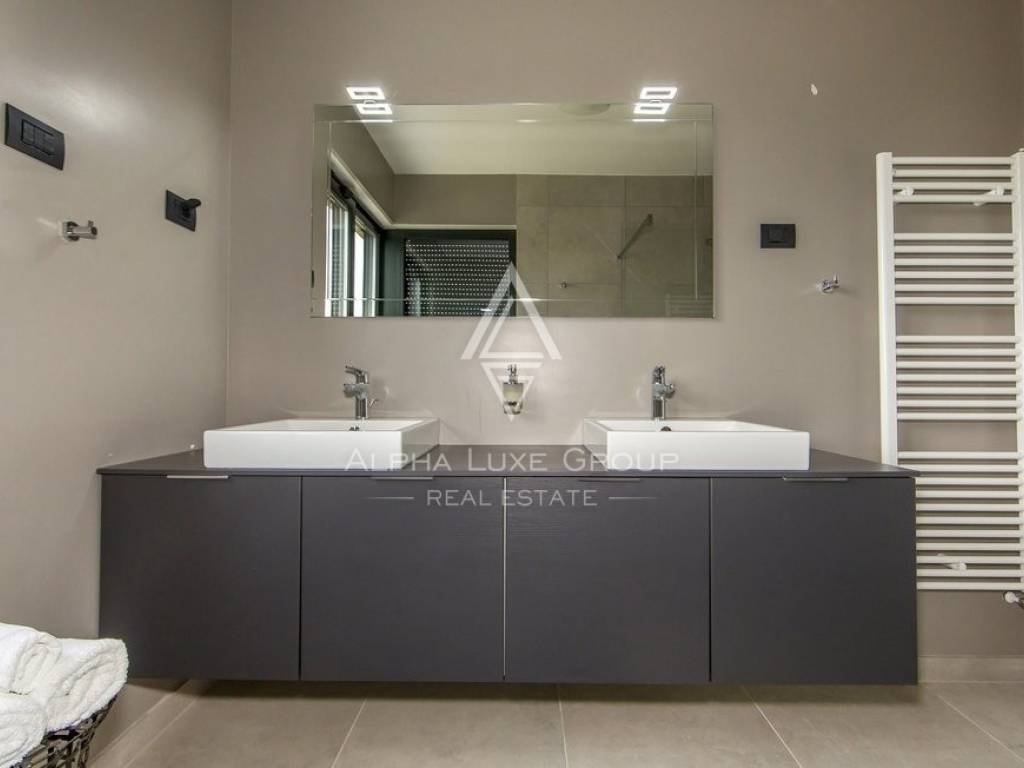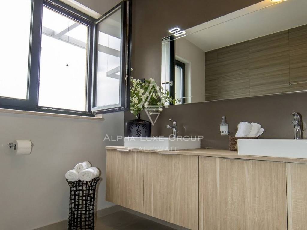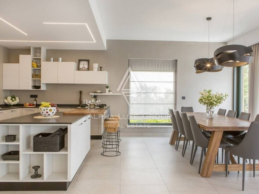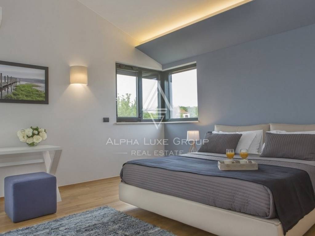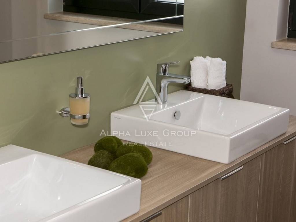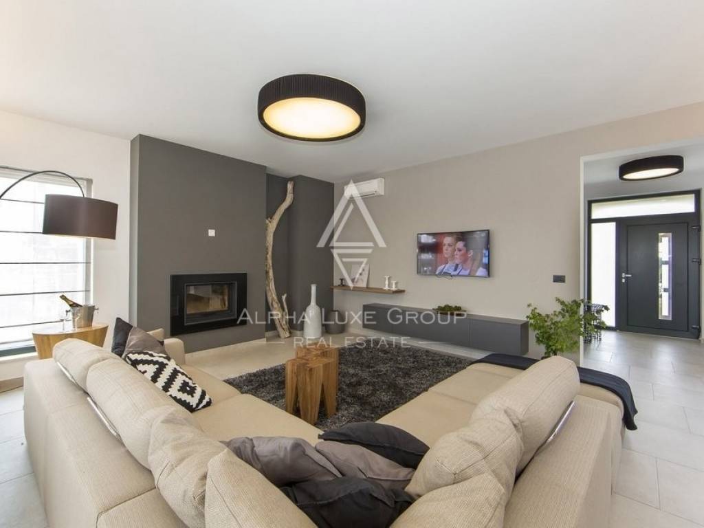 A contemporary villa surrounded by serene nature is now available for sale, located just 15 km from the sea and the vibrant town of Sveti Lovreč. This luxurious home offers a spacious layout and premium amenities, making it an excellent choice for a family retreat or investment property.