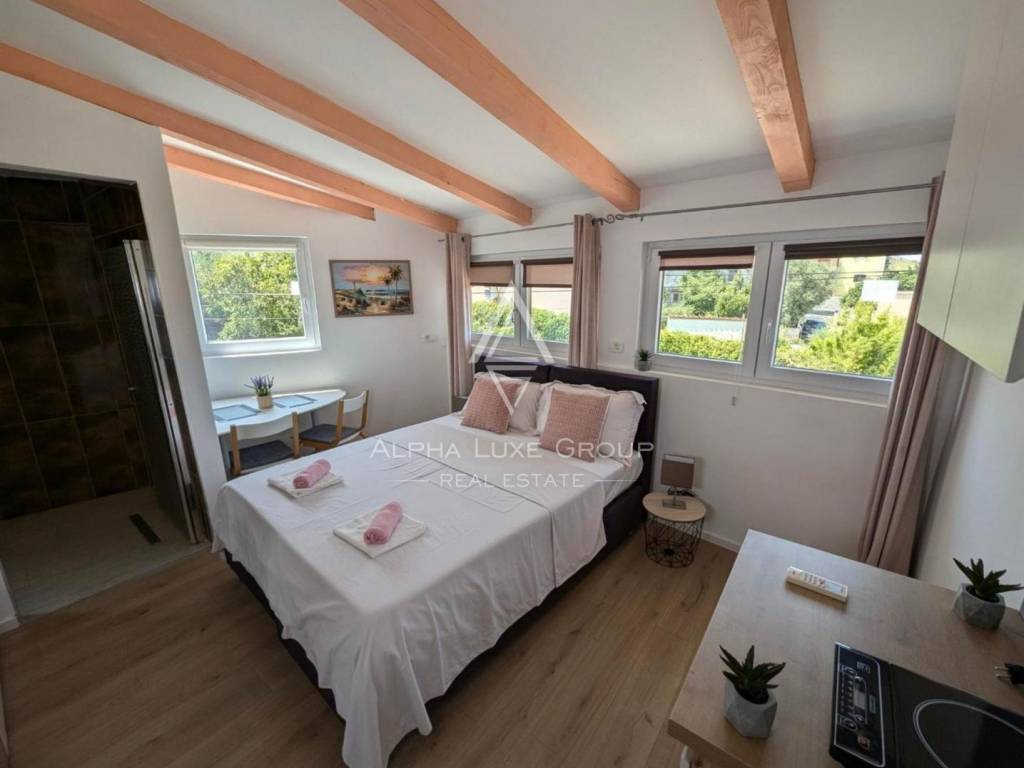Located just 150 meters from the sparkling Adriatic coastline in the charming town of Pomer, this spacious 400 m² property offers exceptional potential for living or tourism investment. The house comprises 11 thoughtfully designed studio apartments, each featuring a modern kitchen and bathroom to ensure comfort and privacy for residents or guests.