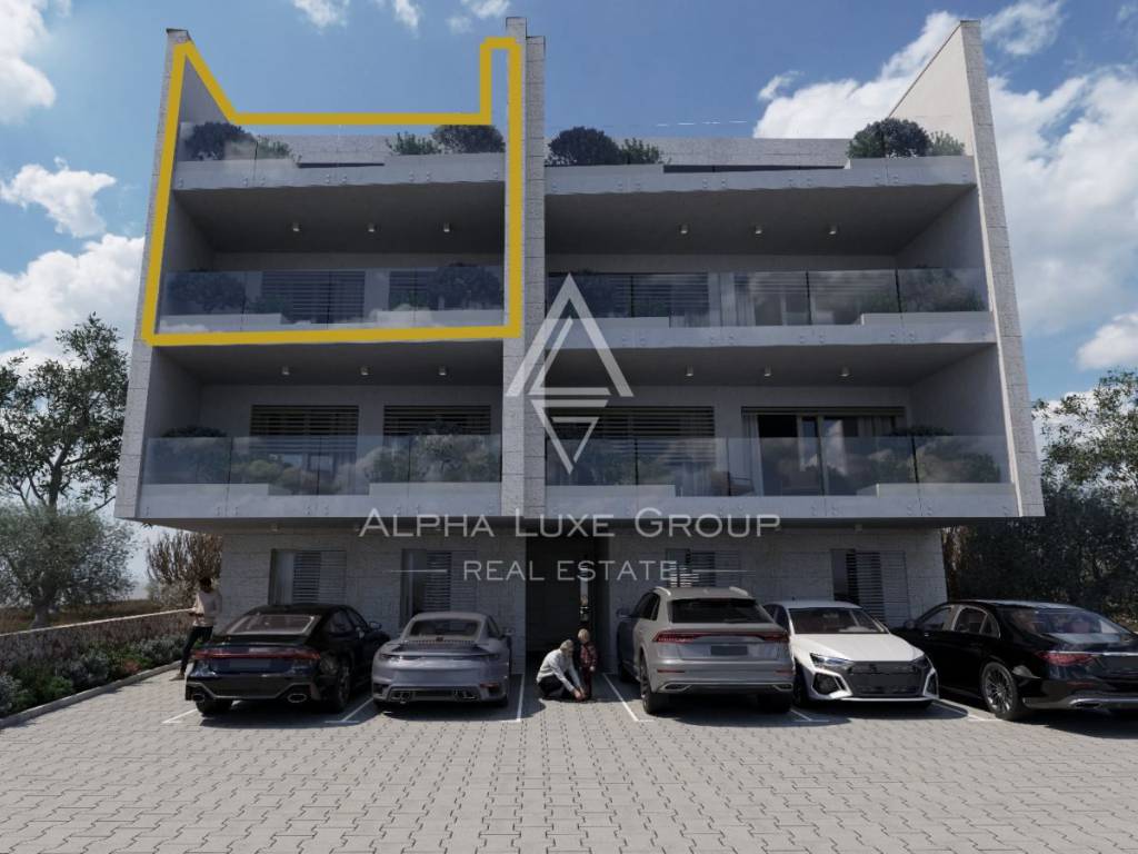 This property is sold in a turnkey phase, with completed flooring and bathrooms but no furniture, offering buyers the opportunity to personalize the interior. The apartment also includes two parking spaces, and the building's construction is expected to be completed in December 2025.