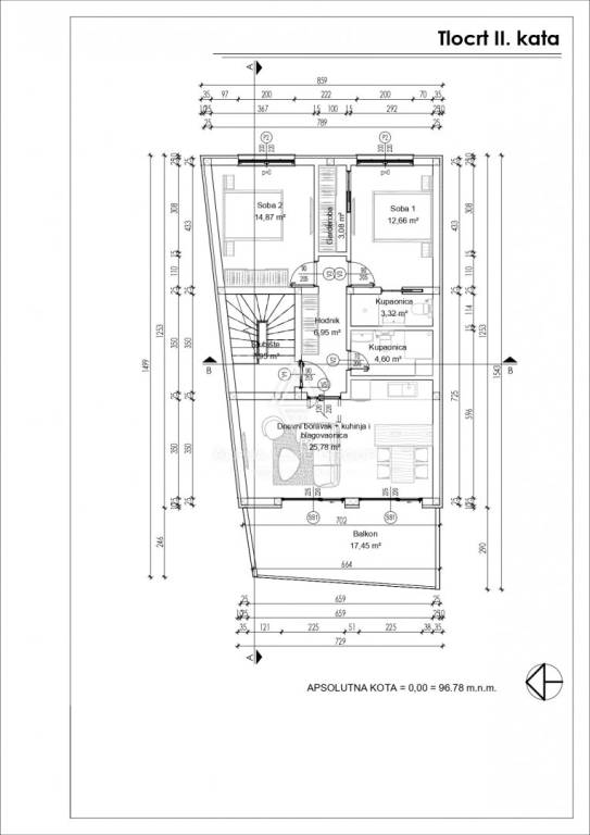 This contemporary apartment, located on the second floor of a newly built residential building in the heart of Tar, offers modern design and comfort. The apartment spans 71.26 m² and features an open-concept living room with a kitchen and dining area, two bedrooms, two bathrooms, a wardrobe, and a hallway.