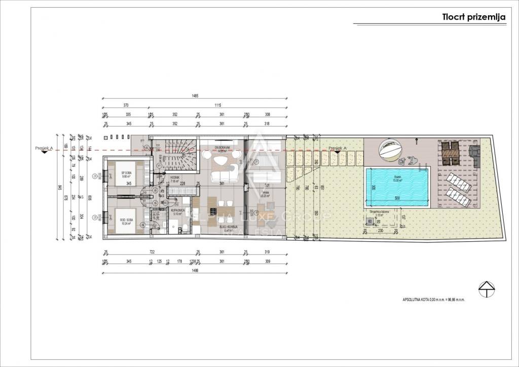 A stylish and contemporary ground-floor apartment with a private swimming pool is now available in the heart of Tar. This property, located in a newly constructed residential building, offers 64.23 m² of living space designed for modern living.
