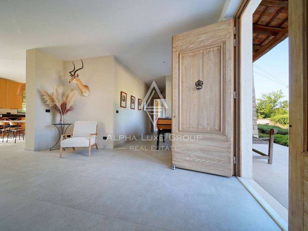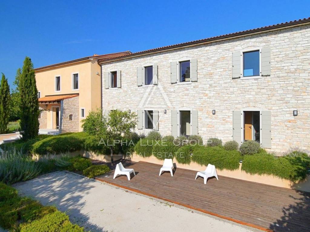 Nestled in a peaceful village between Kanfanar and Svetvinčenat, this impressive villa offers the perfect combination of traditional Istrian charm and contemporary comfort. Situated on a vast plot of 6,133 m², this exceptional property encompasses a spacious main house, an auxiliary guest building, and a wide range of amenities designed for year-round enjoyment.