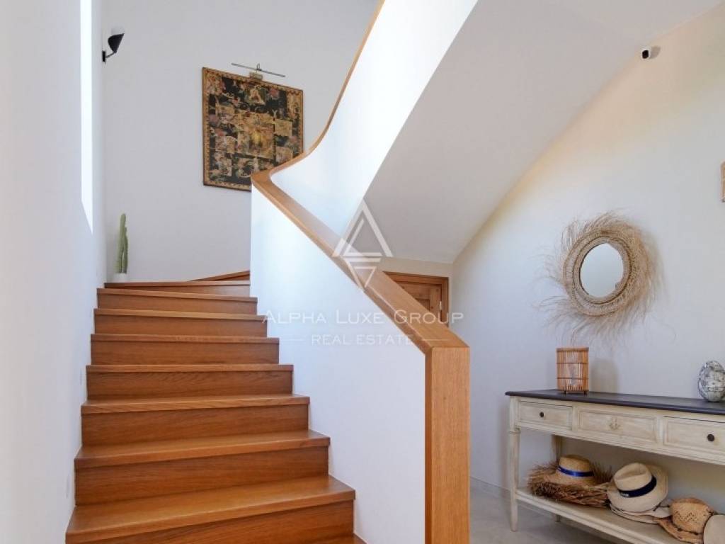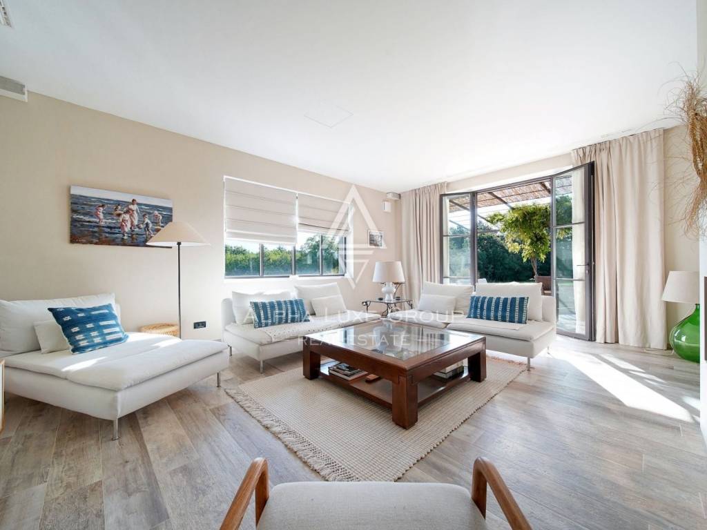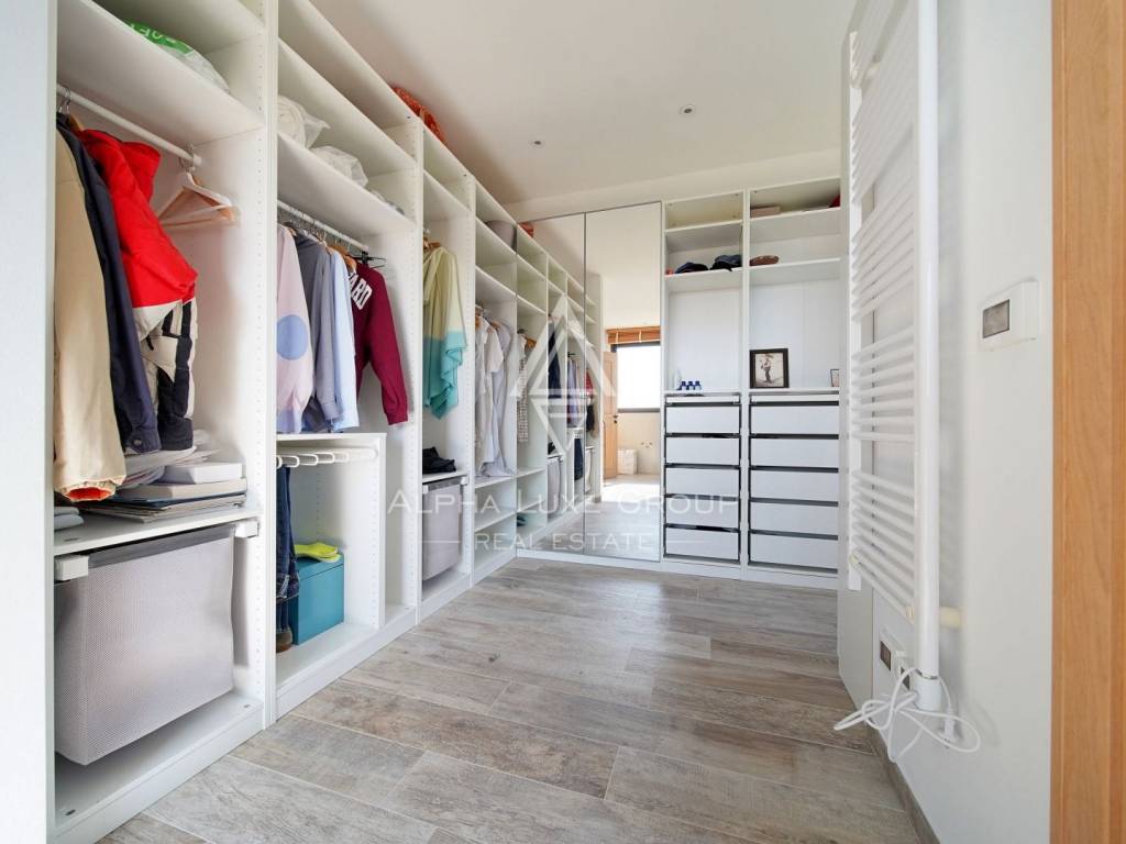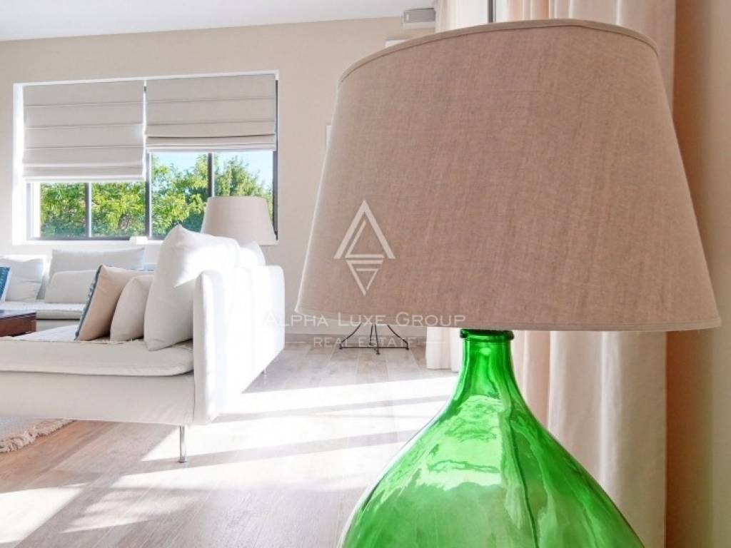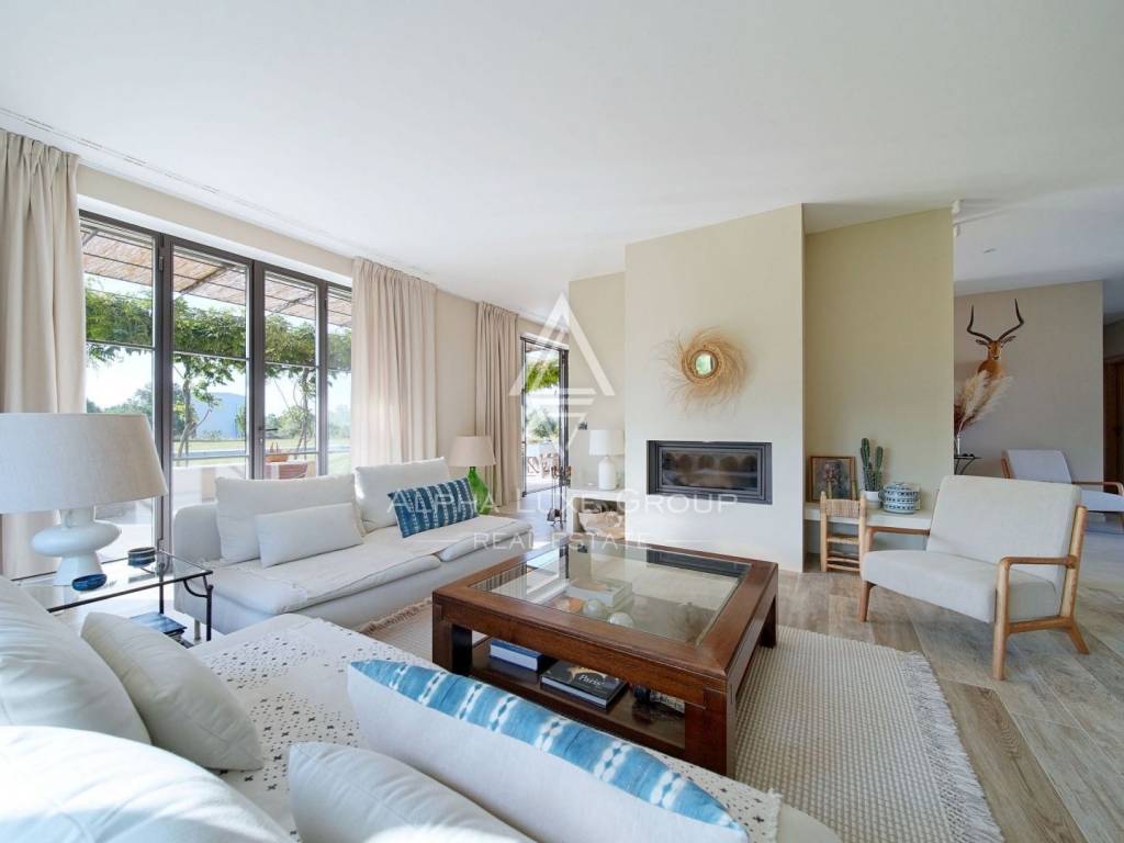 Inside, the villa is equipped with premium materials and smart features. Multi-zone Daikin air conditioning, a heat pump, mechanical ventilation, and underfloor heating ensure year-round comfort. Modern aluminum joinery with double glazing, Schüco profiles, custom wooden interior doors, and an electronic locking system enhance both security and aesthetics. Most of the furniture, including high-quality built-ins and designer pieces, is included in the sale.