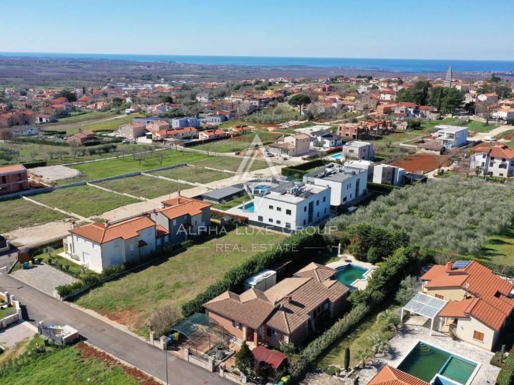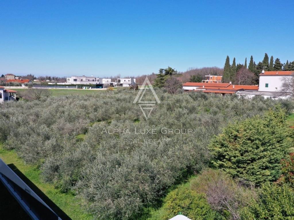 Teren je ravan i pravokutan (približno 21 x 45 m), ograđen s tri strane i uz njega se nalazi sva potrebna infrastruktura: voda, struja i kanalizacija. S budućeg prvog kata pruža se predivan pogled na more i maslinike.
