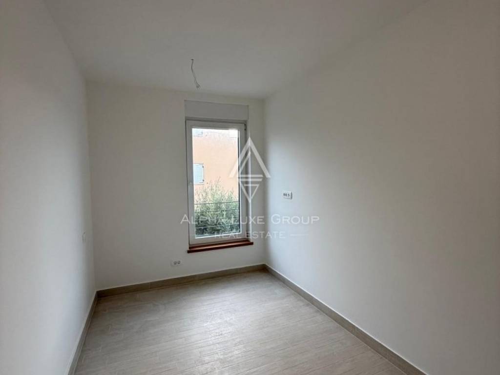 The interior features two bright and spacious bedrooms, an open living area connected to a functional kitchen, a modern bathroom finished with quality sanitary equipment and a convenient storage room. A sunny terrace extends the living space and offers an inviting spot for morning coffee or evening relaxation. The apartment includes a private storage unit in the basement as well as one dedicated parking space. Premium PVC joinery, air-conditioning and the ability to choose tile finishes allow for a personalised final touch.