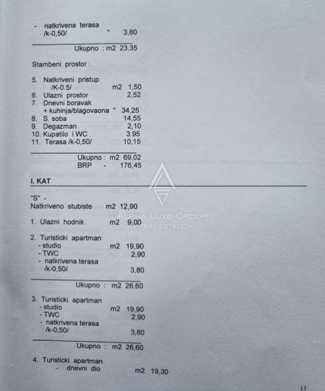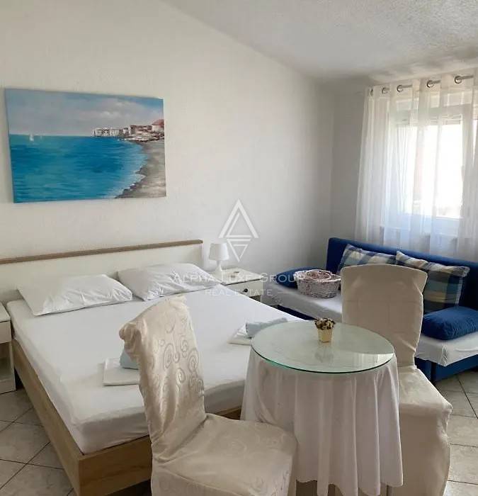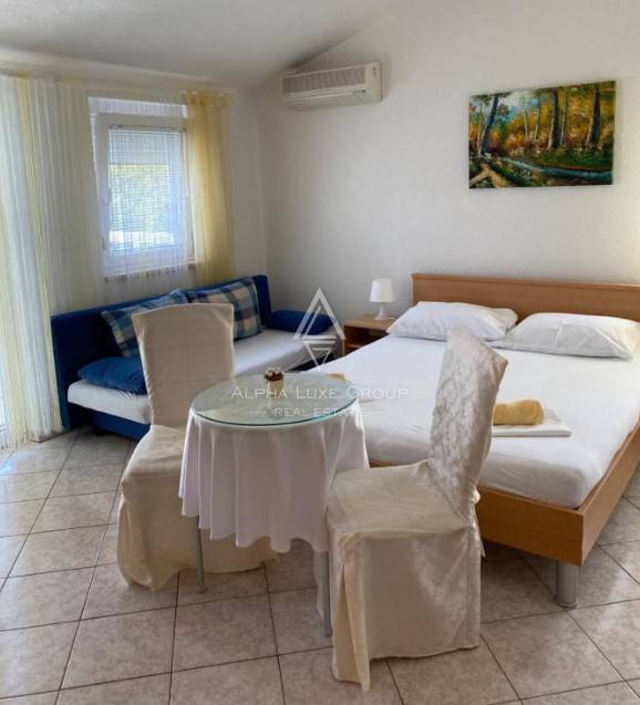 This spacious apartment house for sale in Medulin presents an excellent investment opportunity just a short walk from the coastline. Spread across three levels, the property includes 11 residential units—ten fully equipped tourist apartments and one comfortable family flat. The main building offers 523.75 m² of living space, complemented by an additional 50 m² auxiliary structure that enhances functionality and supports strong rental performance.