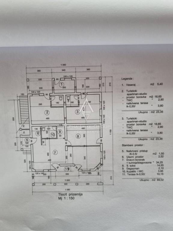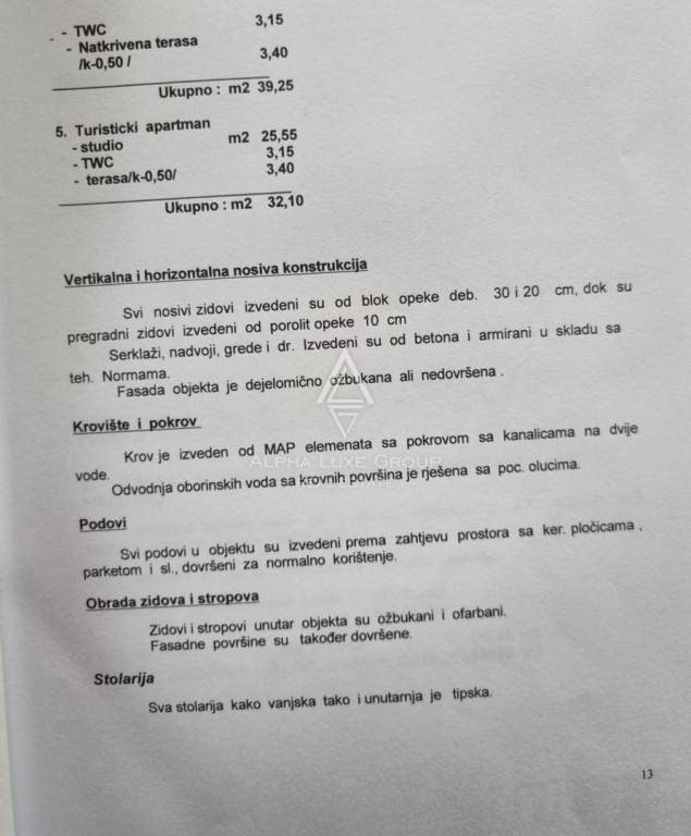 A total of 11 apartments have been legally divided and are sold separately. One apartment has already been purchased, with the owner residing on the ground floor. Seven apartments remain available. The property has recently been upgraded with a solar system and a canopy. Each apartment measures approximately 30 m², with an estimated price of €140,000.