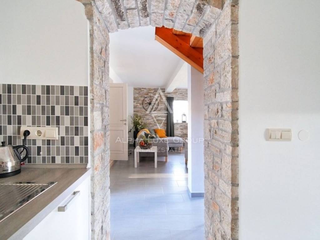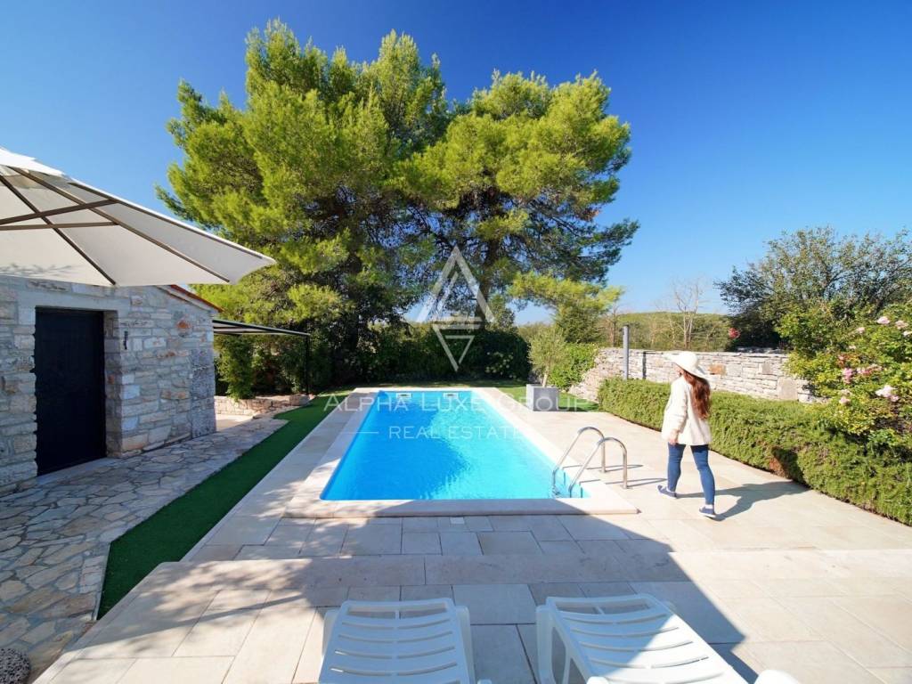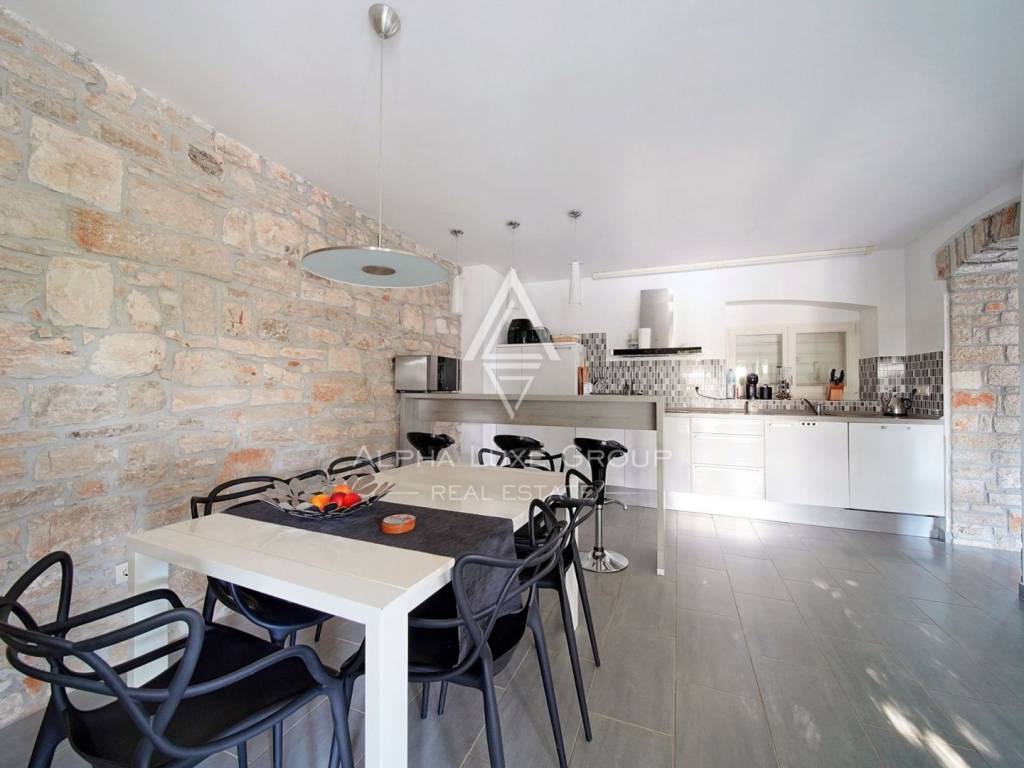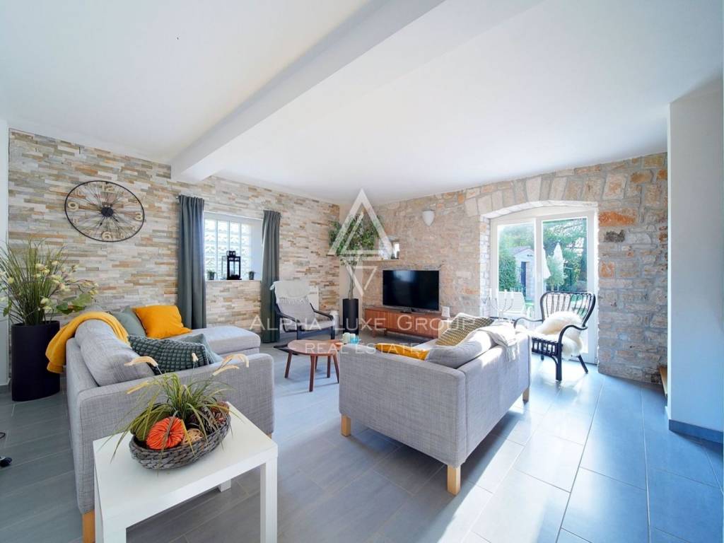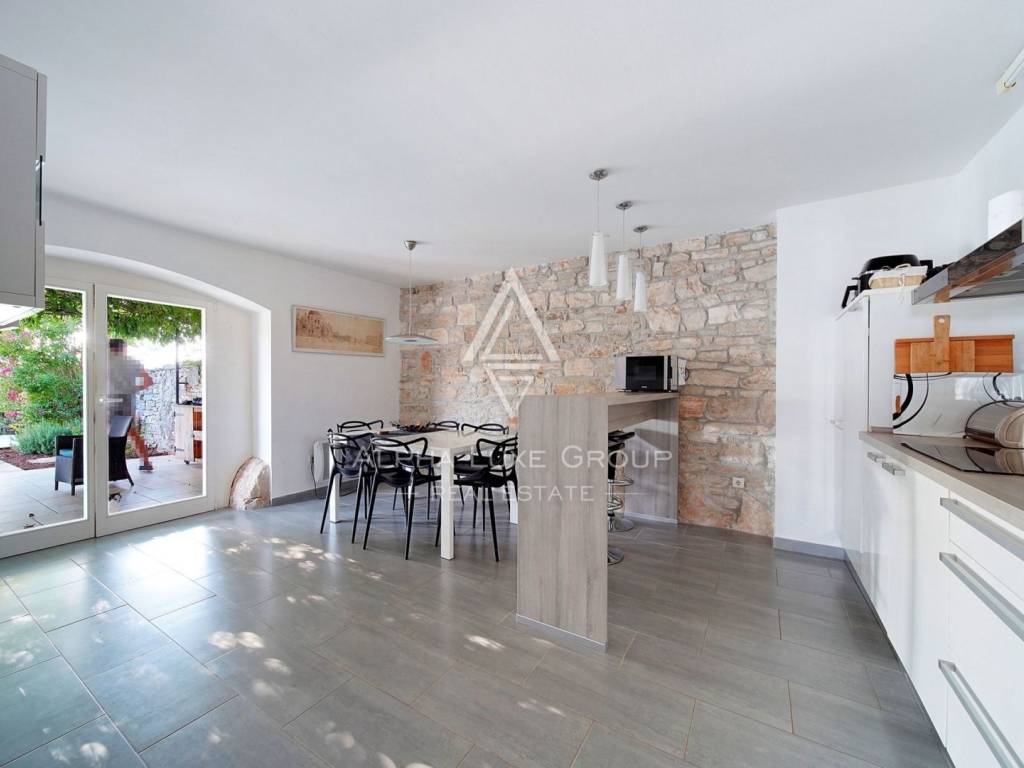 In the charming village of Krmed, just minutes from Bale and Rovinj, a beautifully restored stone house is available for sale. This spacious home, surrounded by lush greenery and traditional dry stone walls, offers a unique retreat that can accommodate up to 8 people across four bedrooms. The property is perfect for both permanent living and summer getaways, with its proximity to Rovinj and Pula providing access to stunning beaches, fine dining, and a variety of attractions.
