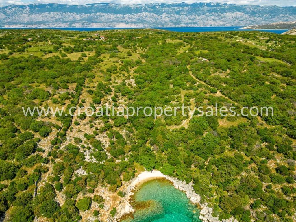 Građevinsko zemljište od 1660 m2 na zapadnoj strani otoka Paga, u blizini Novalje.Podijeljeno je na dvije građevinske parcele: 624 m2 do ceste i 726 m2 iznad.Cijena uključuje građevinsku dozvolu na parceli od 726 m2 za vilu s bazenom s maksimalnom mogućom građevinskom površinom (255 m2 GBP). Moguće je dobiti i drugu građevinsku dozvolu za parcelu od 624 m2.310 m2 spada u opseg obvezne izrade urbanističkog plana uređenja, što znači da se trenutno može koristiti kao dvorište/vrt.Zemljište je idealno za izgradnju obiteljske kuće/vile budući da se nalazi na mirnoj lokaciji s pogledom na Velebit s jedne strane i more s druge, te ne postoji mogućnost zaklanjanja tih pogleda.Parcela ima pristup cestom, a komunalni priključci su u blizini.More je udaljeno 1 km ili 4 min vožnje. Najbliže naselje udaljeno je 7 km, dok je zračna luka Zadar udaljena 90 km.