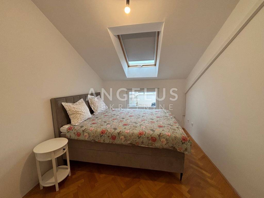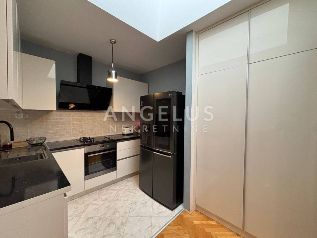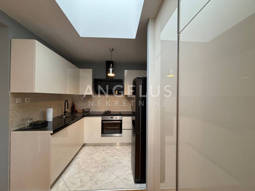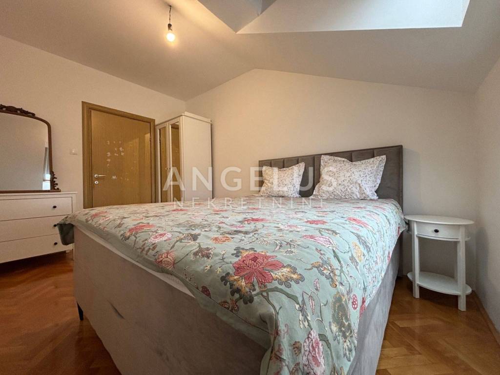 A modernly decorated and superbly equipped three-bedroom apartment is for sale, with a total net area of 110.05 m2, located on the second floor in the attic, facing south. The apartment consists of: kitchen, living room and dining room, hallway, three bedrooms, toilet and bathroom, total net usable area of 72.65 m2, with a corresponding part - a terrace of 24.90 m2 and an outdoor parking area of 12.50 m2. From the dining room and kitchen you can exit to a beautiful terrace, facing south, ensuring plenty of sun and light throughout the day. The apartment is equipped with the highest quality materials and designed to create an elegant ambiance.