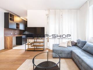Квартира состоит из двух спален, что делает её идеальной для семей или пар, которые ценят дополнительную приватность и комфорт. Дополнительное удобство и организацию пространства обеспечивает отдельная гардеробная. Просторная гостиная соединена со столовой, а кухня оформлена в современном стиле и функциональна. Квартира находится в тихом месте, что является особым преимуществом для тех, кто ищет тишину и отдых в городском окружении.