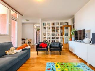 The apartment is on the fourth and top floor of the building, with an attic above. It spans nearly 100 m2 and consists of carefully designed spaces that ensure comfort and functionality. The entrance hall leads to a spacious living room, ideal for family gatherings, with direct access to a balcony offering a beautiful view. A guest toilet is conveniently located near the living room.