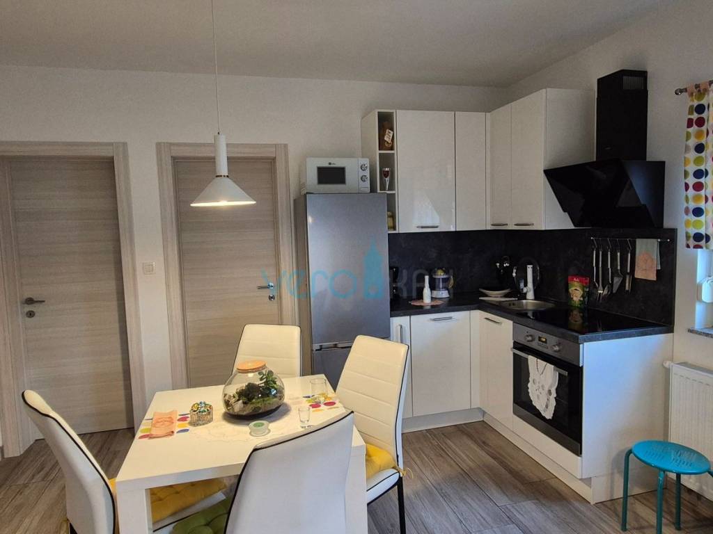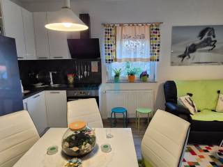 Увала Солине, окрестности! Двухкомнатная квартира с видом на природу. Двухкомнатная квартира площадью 47 м2 расположена на 2 этаже многоквартирного дома из 6 апартаментов, в тихой части окрестностей Увалы Солине, окружённая зеленью в оазисе покоя и тишины. Состоит из входной зоны, двух спален, кухни с гостиной и столовой, ванной комнаты и лоджии. Квартира оснащена инверторным кондиционером, а также имеется отопление с помощью электрического бойлера Vaillant (радиаторы во всех комнатах). Квартира имеет принадлежащее крытое парковочное место площадью 12,50 м2 на благоустроенной территории, а также в пользовании общая часть двора, душ и камин.