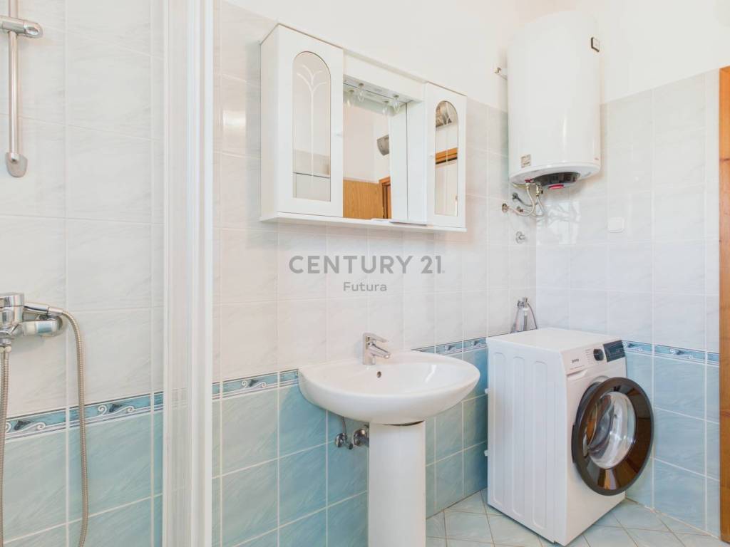 The apartment also includes a covered parking space and a 32 m2 yard behind the house with olive trees.