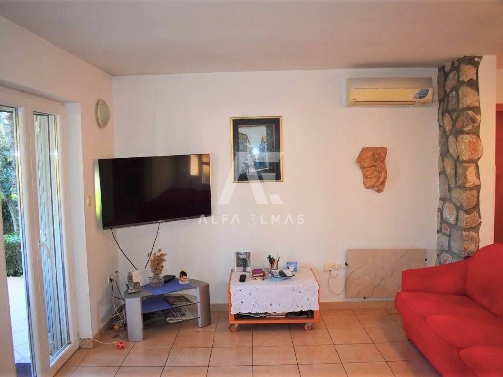 Malinska, a semi-detached house with three residential units, located in an extremely attractive location, only 80m from the sea. The house has a ground floor and a first floor, with a total living area of 120m2. The semi-detached house contains a total of three bedrooms, three bathrooms, three kitchens and a living room. The semi-detached house in Malinska has a wonderful view of the sea from the closed terrace. Parking for a minimum of three vehicles is available on the landscaped garden, which includes a garden and a barbecue. The semi-detached house is located in the immediate vicinity of all the necessary amenities and represents an ideal investment opportunity for tourist rental purposes, as well as housing. Documentation in order!