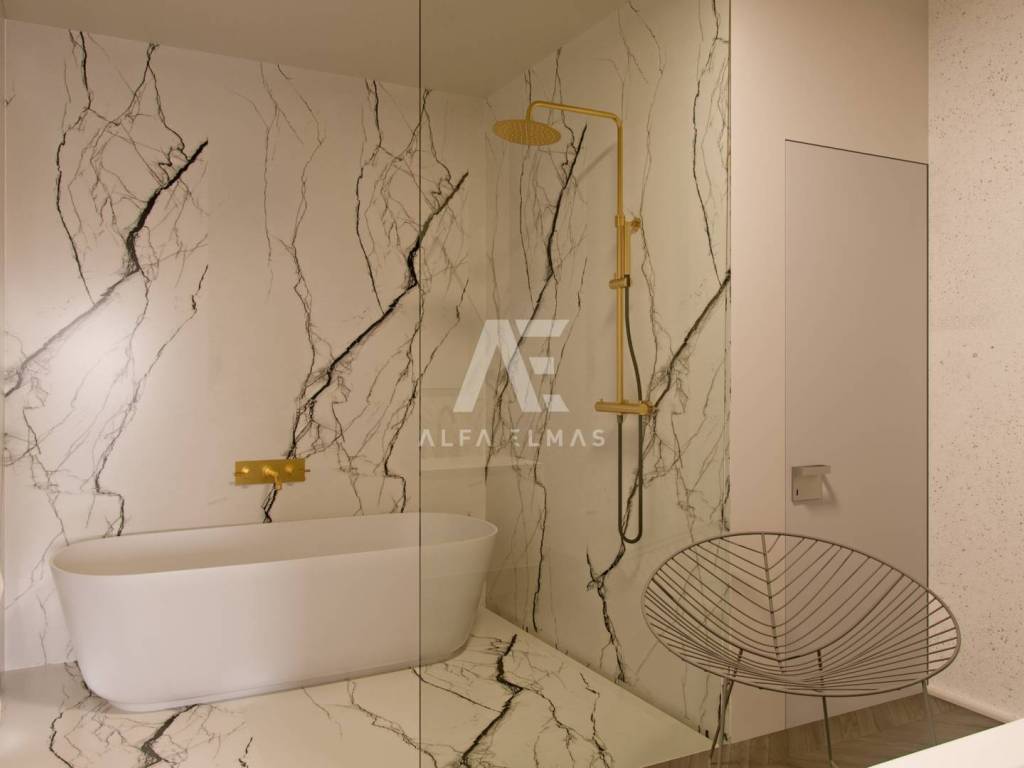 The first floor consists of a toilet, a large open space that connects the spacious living room, a large kitchen that connects to the dining room. The entire space is abundant with daylight that comes through large glass surfaces that connect the interior with the exterior. The large covered terrace, where there is a large swimming pool surrounded by a spacious sunbathing area with a view of the sea, represents the perfect combination of elegance, comfort and proximity to the sea, offering an ideal home or investment opportunity.