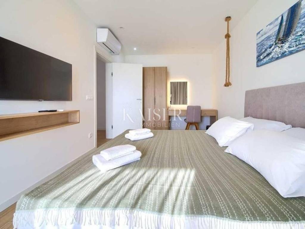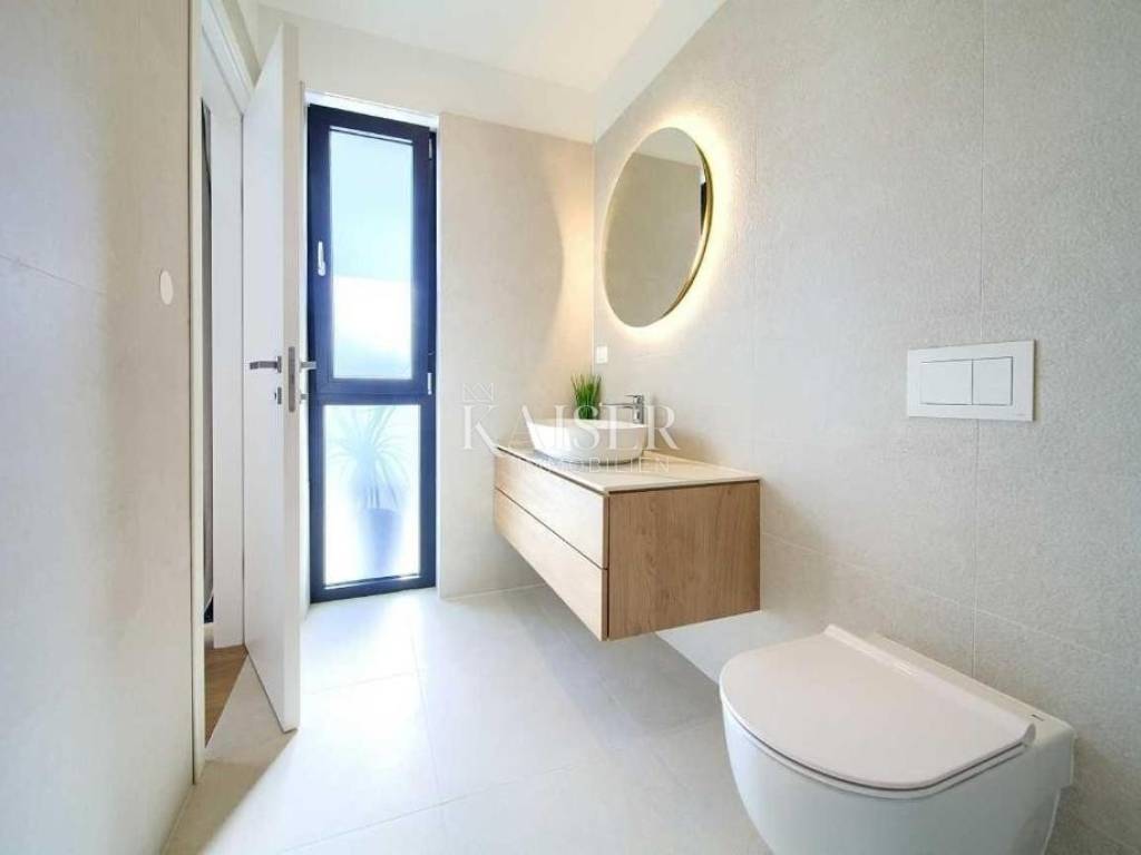 High-quality materials and equipment were used in the construction and furnishing, top-quality ceramics from renowned manufacturers, quality joinery, underfloor heating throughout the building, air conditioning in all rooms, preparation for solar panels, and a charging station for electric vehicles.