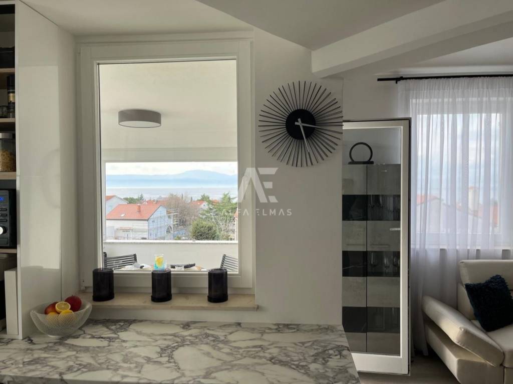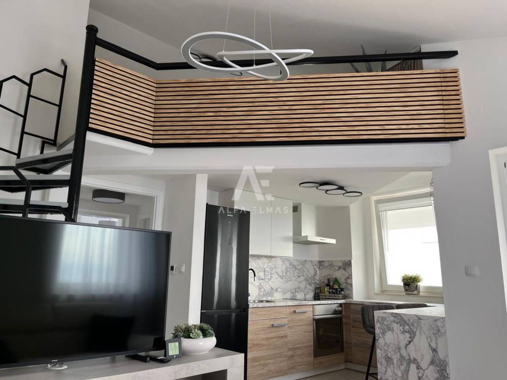 In Malinska, at the heart of one of Krk’s most desirable destinations, lies a carefully designed apartment that perfectly combines contemporary design, comfort, and an irresistible sea view. Located on the second floor of a well-maintained building, this 47 m² apartment – extended by a gallery to about 65 m² of usable space – is conceived as a home where every detail fits into a harmonious whole.