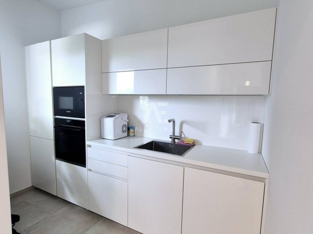 The property was built with an emphasis on quality and durability – featuring glass walls, PVC joinery, and premium finishing materials. The penthouse includes two parking spaces, and the buyer also owns a 74 m² plot of land that can be used for additional parking or as storage for a trailer or boat.