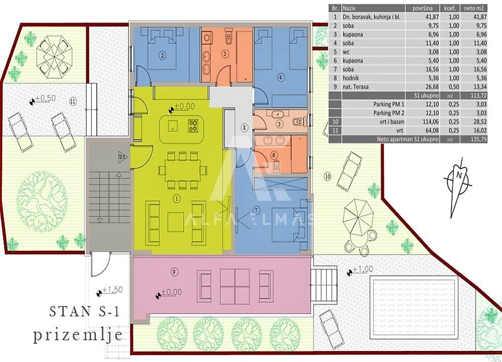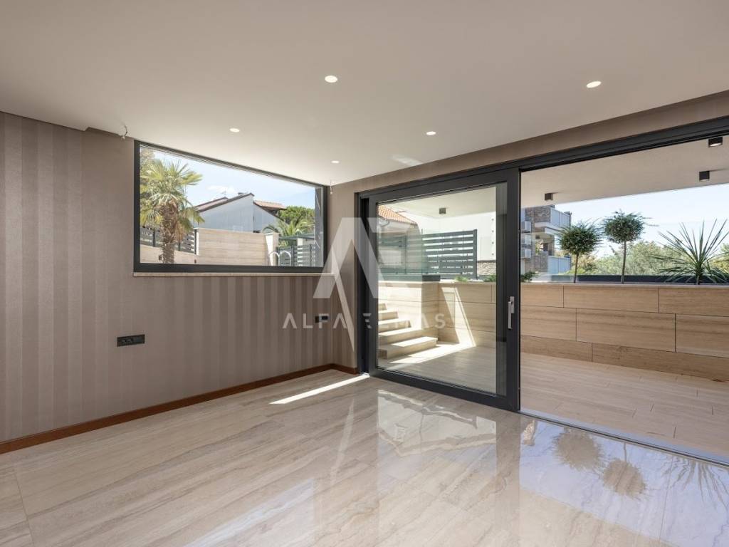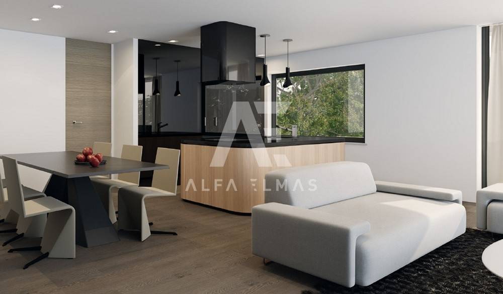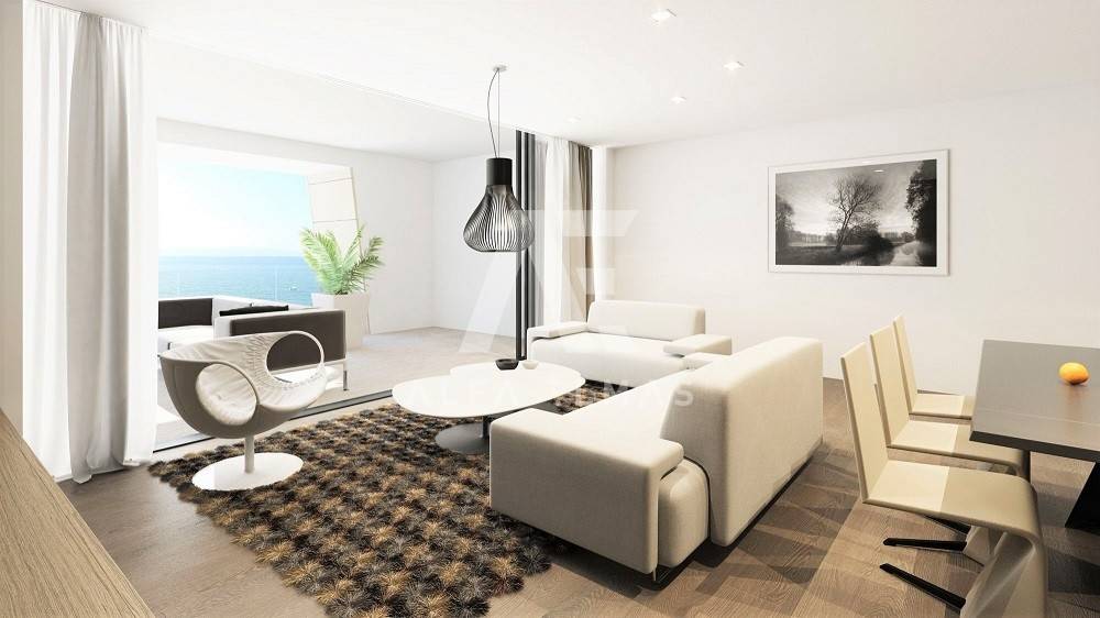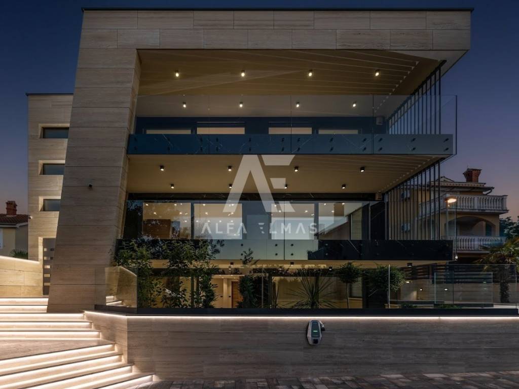 Malinska, new building, luxurious modern apartment of 113m2 with garden and swimming pool on the ground floor of a residential villa with three residential units. The luxurious apartment with a comfortable layout consists of a combined living room, kitchen, dining room with large panoramic glass walls and access to a covered terrace with a swimming pool and sunbathing area, bathroom, toilet and three bedrooms, one of which has its own bathroom. The equipment of the apartment on the ground floor includes high-quality ceramics, high-quality sanitary ware, parquet, underfloor heating, air conditioning system in all rooms, and carefully selected lighting fixtures that give the apartment a pleasant impression that you will enjoy!! On a landscaped garden of 126m2. it includes a swimming pool with a sunbathing area and a built-in parking lot of 24 m2. for two vehicles. The luxury apartment is located in an exclusive location in Malinska, only 80m from the sea, promenade, beach!!