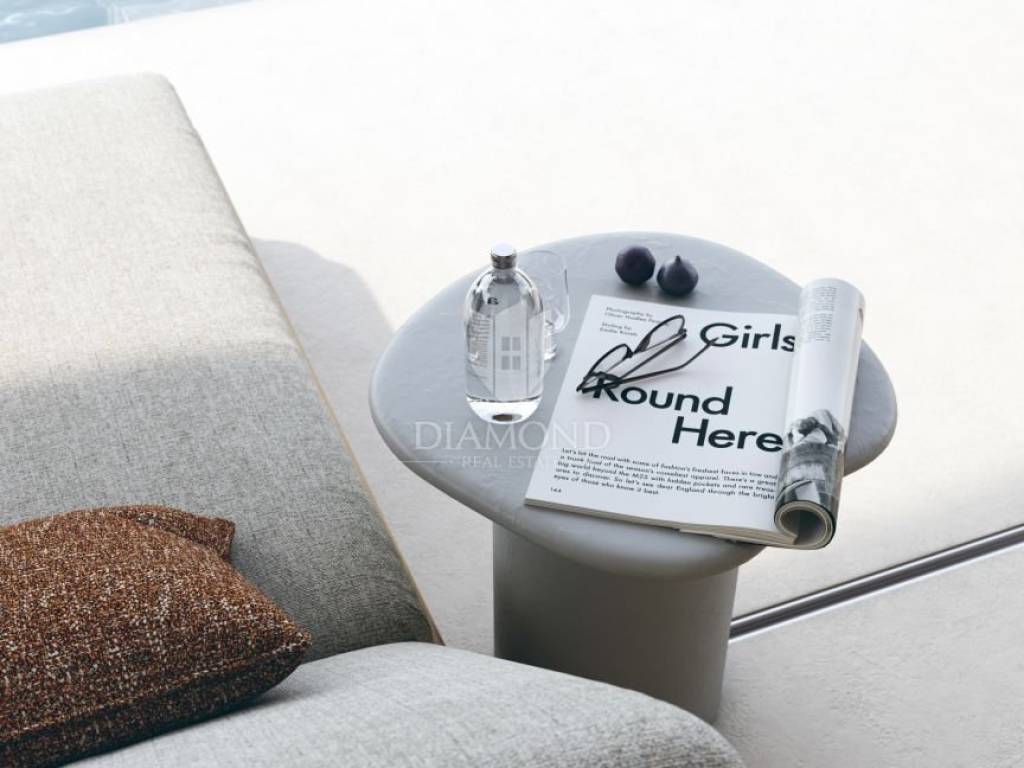 For an additional fee, it is possible to arrange complete custom-made interior furnishing, including furniture, lighting, household appliances, and sanitary ware. A package of equipment for tourist rental is also available, such as bed linen, towels, and dishes, as well as a premium finishing of the pool with large-format mosaic tiles.
