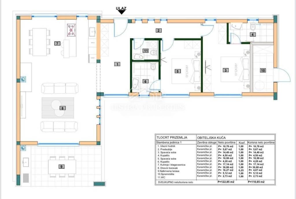 The house consists of an open and bright living room with a kitchen and dining room, which is connected to a covered terrace where there is a summer kitchen and a dining table for pleasant summer family gatherings. Inside this excellent house there are 2 bedrooms with private bathrooms, an additional toilet/laundry room and a storage room on the outside.