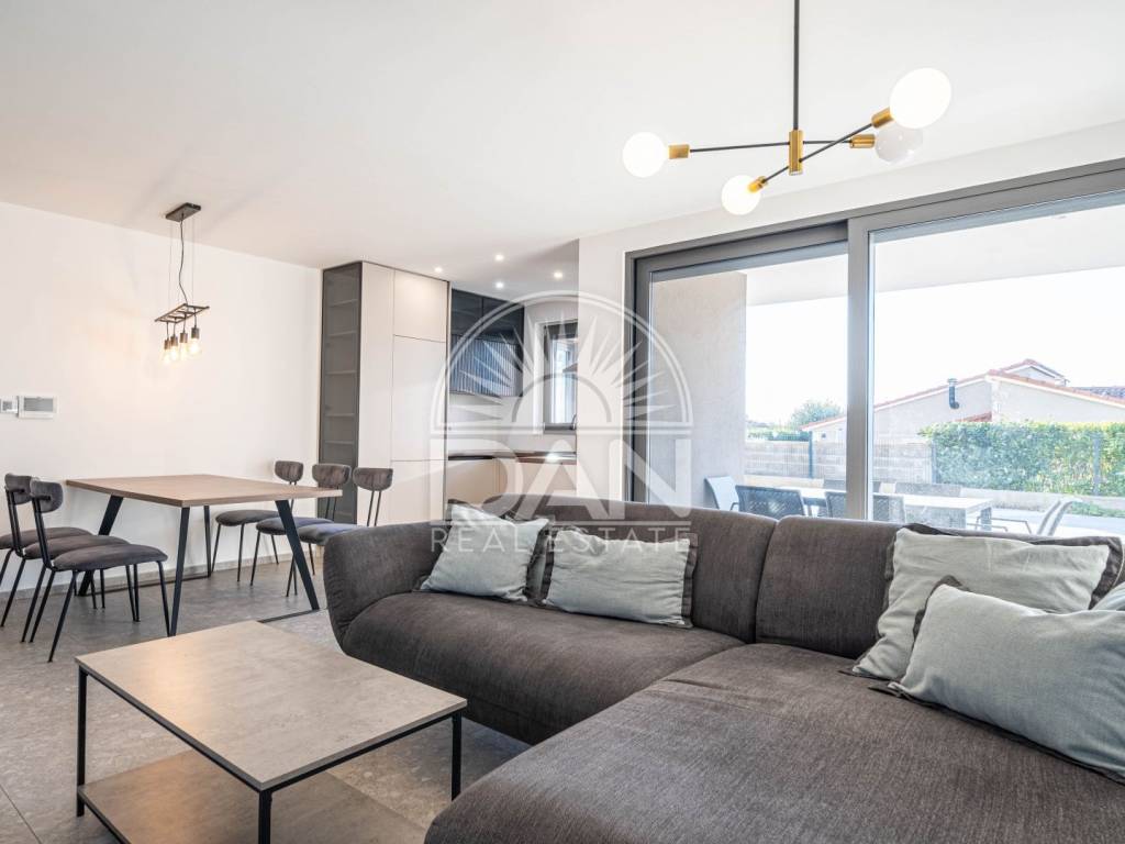 In a peaceful area near Poreč and the sea, a high-quality and modernly equipped apartment is for sale, located on the ground floor of a smaller new residential building. The property stands out for its functional layout, high level of comfort, and a beautiful private garden with a swimming pool.