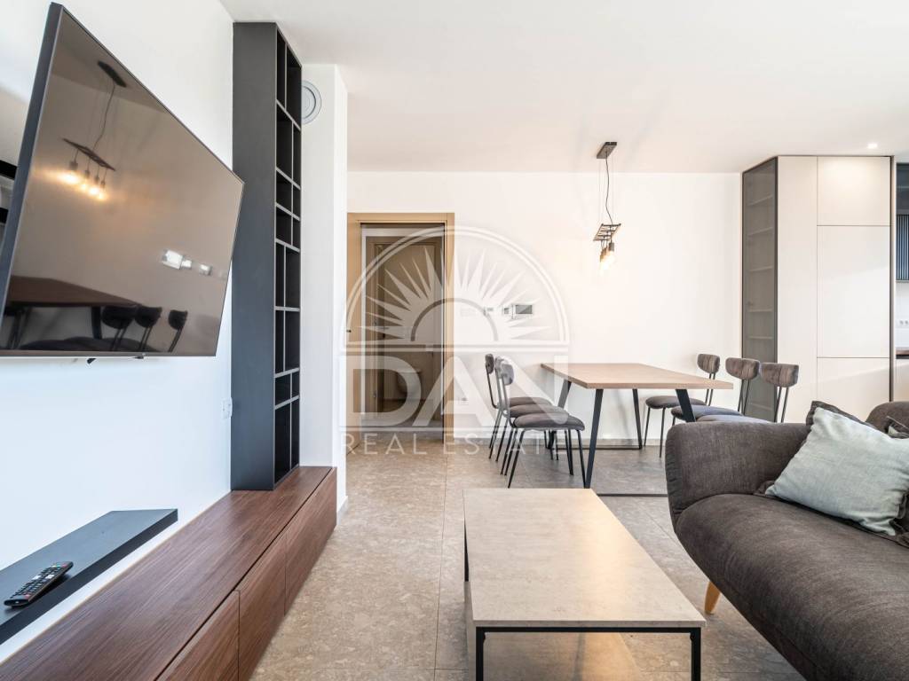 The apartment is fully furnished with custom-made furniture and provides ample space and functionality for year-round living. It is equipped with underfloor heating, air-conditioning units in all rooms, and a fan-coil system connected to a heat pump, ensuring a pleasant indoor climate throughout the year. High-quality joinery with electric roller shutters further enhances comfort and energy efficiency.