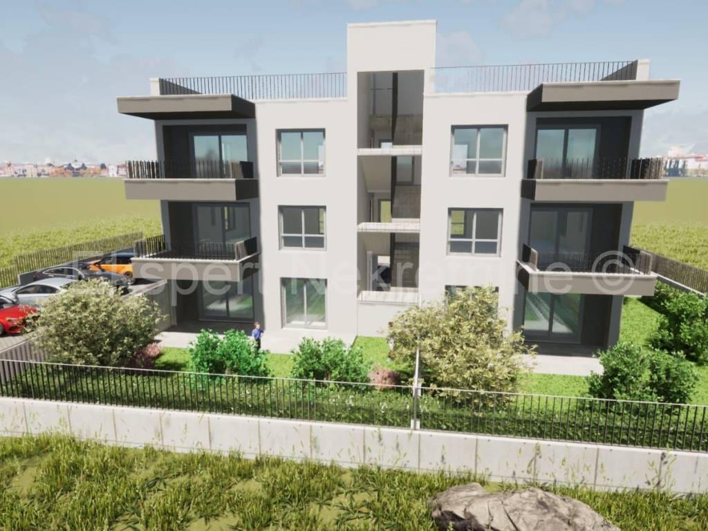 Trogir, Plano, two-bedroom apartment 70 m2 + garden 68 m2, in a new building in a smaller residential building with only 6 apartments. The apartment is located on the ground floor of the building, south-west-north oriented and consists of two bedrooms, bathroom, hallway, kitchen with dining room and living room, large terrace (17 m2) and garden (68 m2), and one parking space.The building is located in a peaceful and quiet location. The works have started and completion is planned for spring 2027. Quality equipment (inverter air conditioning, underfloor heating throughout the apartment, six-chamber PVC joinery with 3 glasses, quality ceramics. burglar-proof doors, mosquito nets, thermal facade, ... etc.). Payment by construction stages.For more information and reservations, contact the agency.