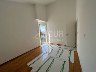 We offer an apartment in Malinska on the island of Krk. It is located in a very high-quality and neat building and has a beautiful view of the sea. The apartment is located on the 2nd floor, consists of a living room and kitchen, hallway, bathroom, two bedrooms and a loggia. The apartment has a total area of 66.50 m2, but in nature the apartment functions as a two-story apartment because it also has a gallery of 19.1 m2.