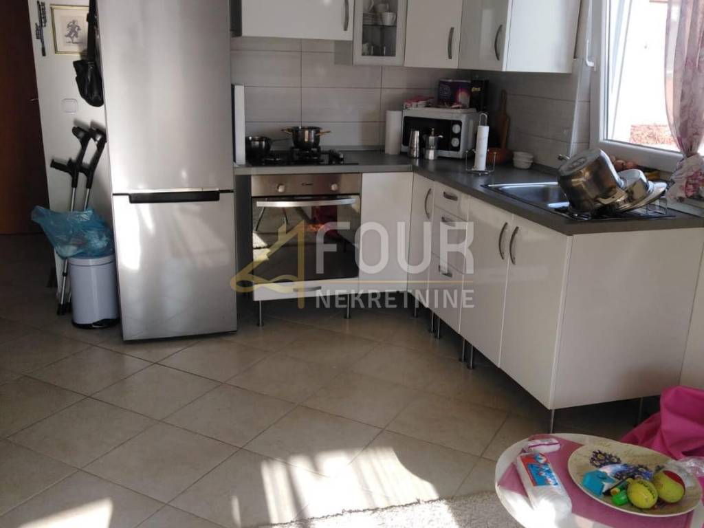 We offer an apartment in an attractive location, near the sea and the beach and the center of Fažana. The apartment consists of two bedrooms, kitchen and living room, bathroom and terrace. There is no shortage of daylight and warmth in the apartment. Of the belonging rooms, there is a storage room and a secured parking space.