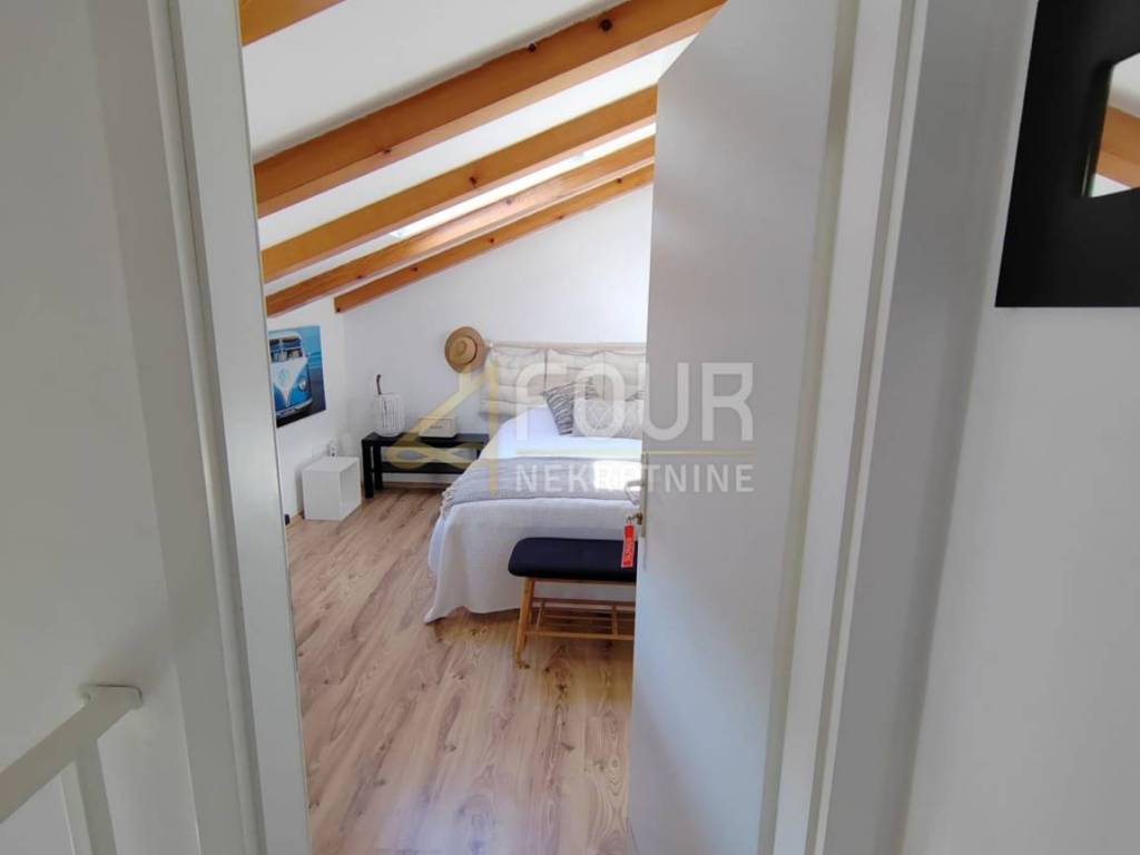 We offer a two-story apartment of 45.50m2 located in beautiful Rovinj! The apartment consists of two floors that can also function as two residential units - studio apartments, which represents an ideal opportunity for investment in tourist rental. On the first floor there is a room, a small kitchen, a dining area and a spacious bathroom. On the second floor there is a bedroom, a kitchen with a dining room and a spacious bathroom. The apartment has recently undergone a complete renovation, including the replacement of all installations, installation of new floors and joinery. An additional advantage is that the apartment is sold fully furnished.