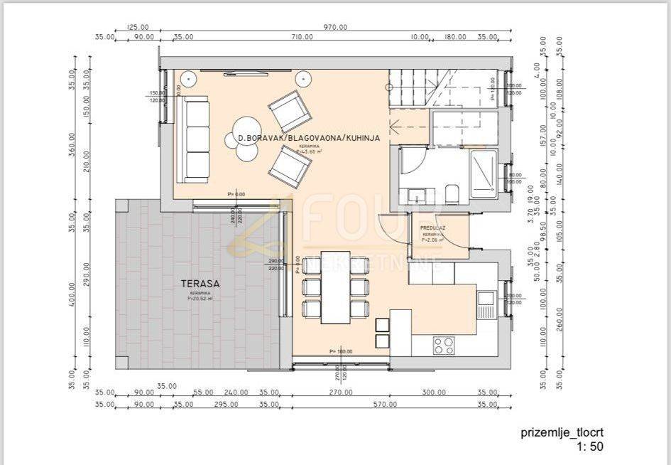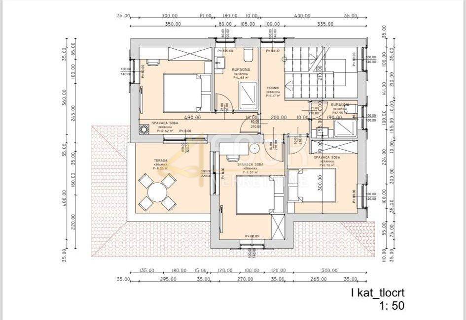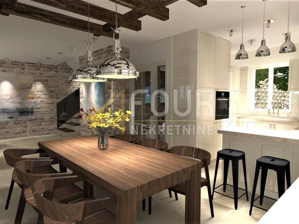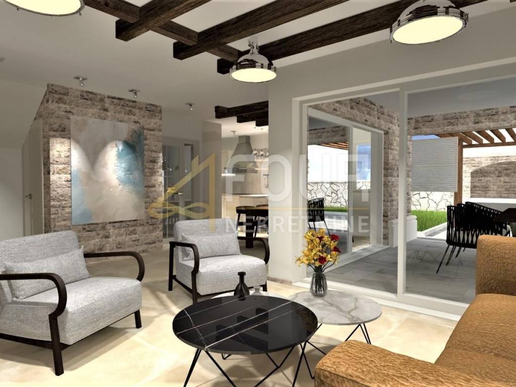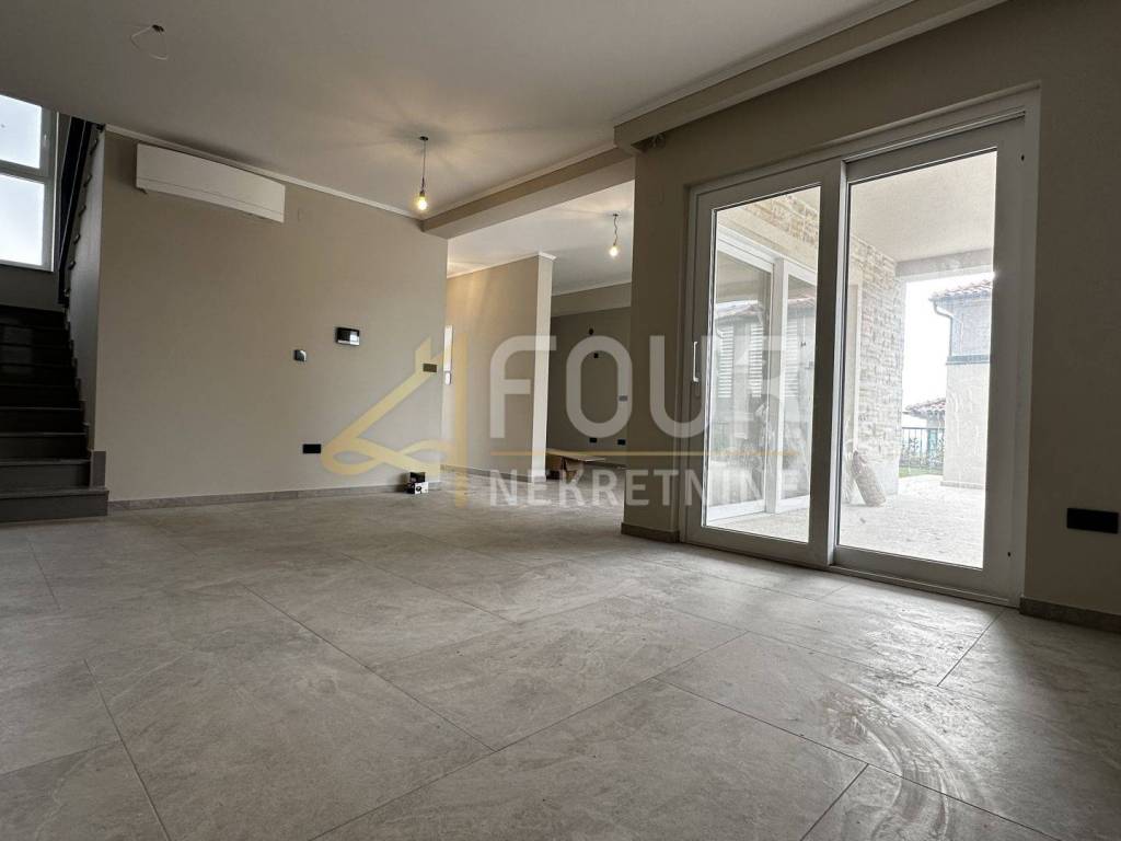 The house is designed as a two-story apartment (ground floor and first floor). On the ground floor there is a kitchen, living room, dining room and a spacious terrace. There are three bedrooms and two bathrooms on the first floor. It is sold fully furnished - complete furniture will be provided by the end of the year. Heating in the house is possible through air conditioning, underfloor heating and a heat pump, and there is also a place for a fireplace. Each room is equipped with air conditioning and a thermostat, and the house has a built-in video surveillance system and an alarm system. Quality PVC joinery with three-layer glass and burglar-proof doors were also installed.