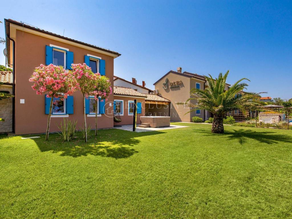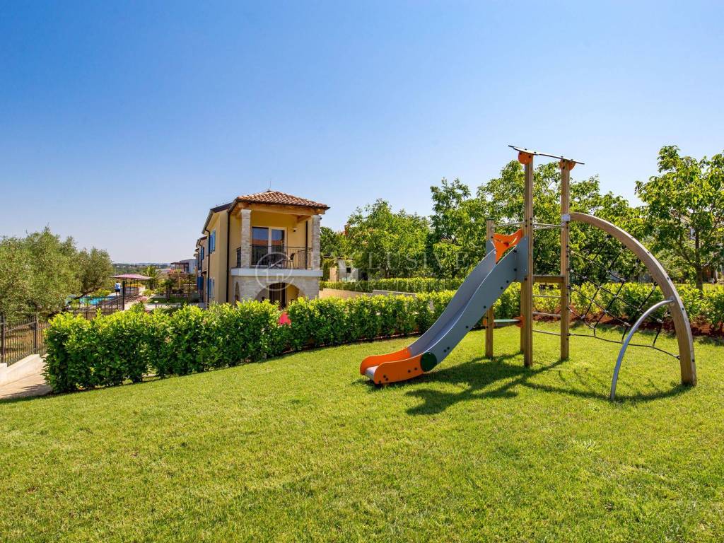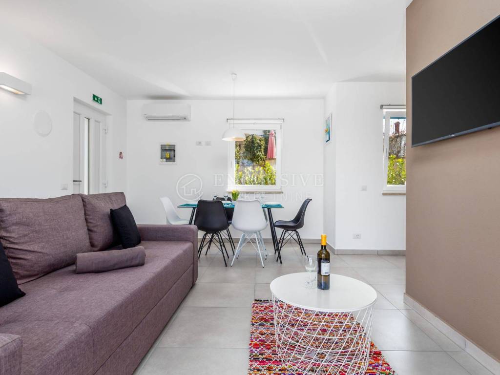 POREČ - The complex was newly built in 2017 and is situated in Poreč. This brand new spacious apartments with high quality fittings is perfectly designed for a comfortable stay for 2 – 8 persons.The complex is surrounded with beautiful garden with splendid Mediterranean plants and outdoor swimming pool. Sunbathing terrace with sun loungers around the pool are the perfect place to relax. Beautiful sunny beach with crystal sea are very close from residence. Free parking provided.