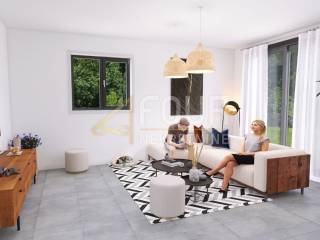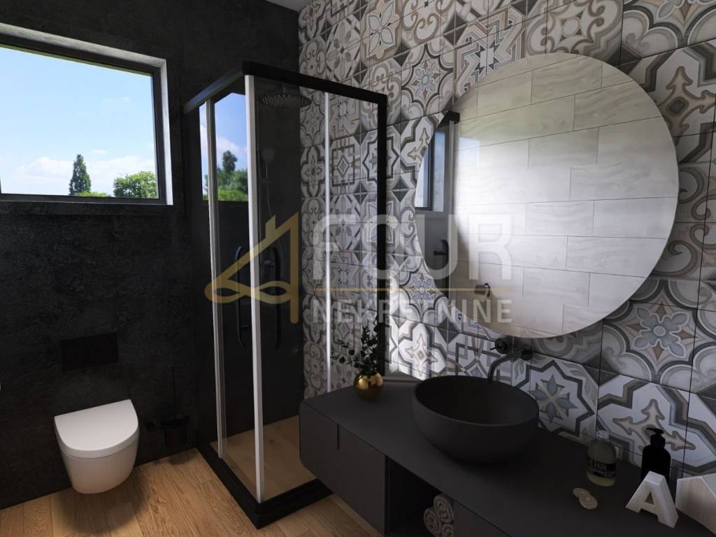 The house will be equipped with high-quality PVC joinery with roller shutters, large-format ceramics, top-quality sanitary ware, 12 V underfloor heating, air conditioning and camera installations.