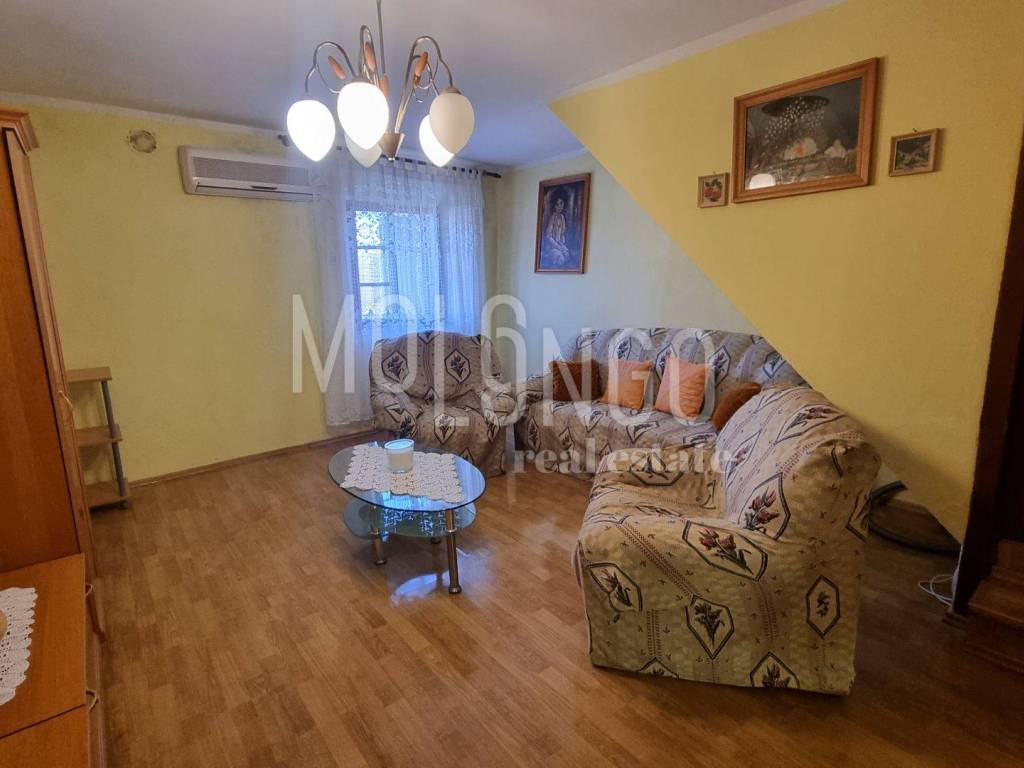 In a small village in the municipality of Vižinada, we received a terraced house for renovation. The house consists of a ground floor with a large tavern and a cistern, a first floor with a kitchen, living room and bathroom, and on the second floor we have a hallway and two rooms and a large terrace. The heating is classic, the house has two chimneys and air conditioning. The roof was renovated a few years ago. Along with the house, there is also a 44m2 outbuilding and a tavern with a LIŠERA fireplace, which is approximately 15m2.