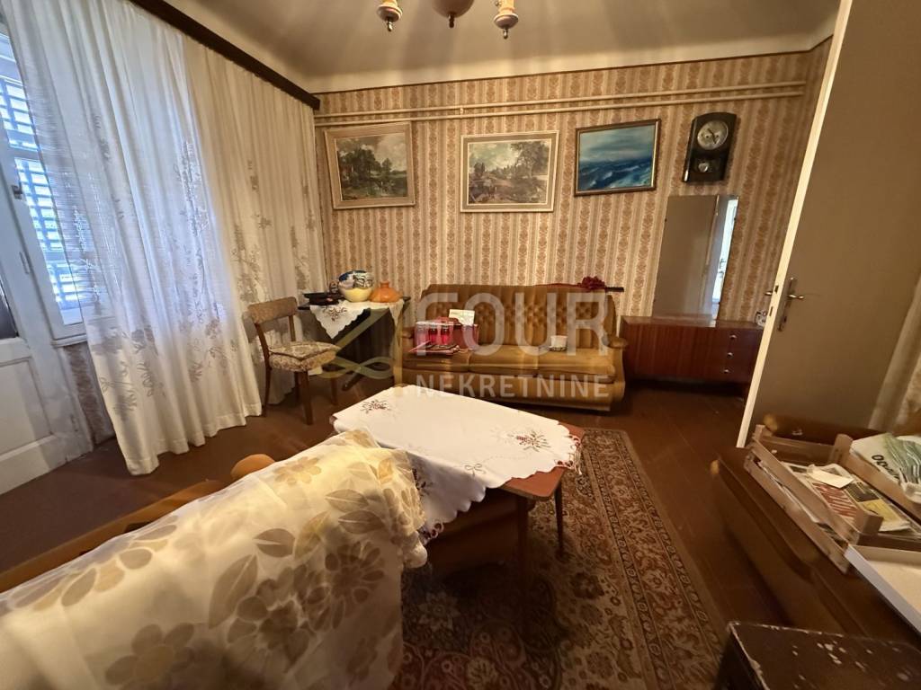 The ground floor requires complete renovation, while the first floor is in usable condition but also needs refurbishment. The wooden floor structure, original carpentry, and stone construction give the property a unique character and potential for adaptation.