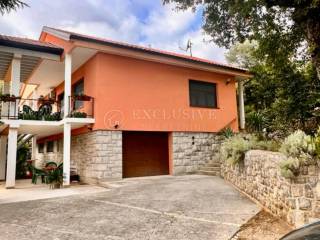 LOVRAN - For sale is a house in a fantastic location, near the sea and the center of Lovran. The house is located on a large plot of about 1200m2 and is surrounded by palm trees and Mediterranean plants, giving the house privacy and an oasis of peace. It consists of two apartments, a garage and a large terrace. There is a view of the sea from the terrace. The house was renovated in 2014, so it has a new roof, new facade, electricity and water installations and new carpentry. There are solar panels on the roof for heating water. The yard is spacious and fenced on all sides. Neatly maintained.