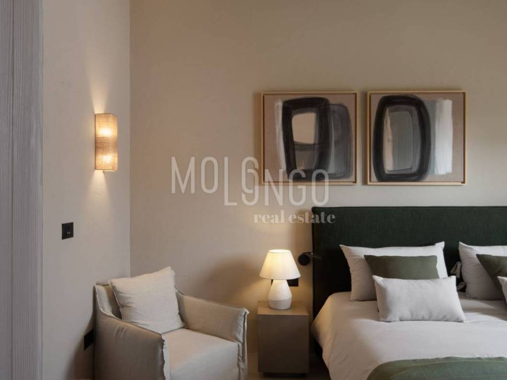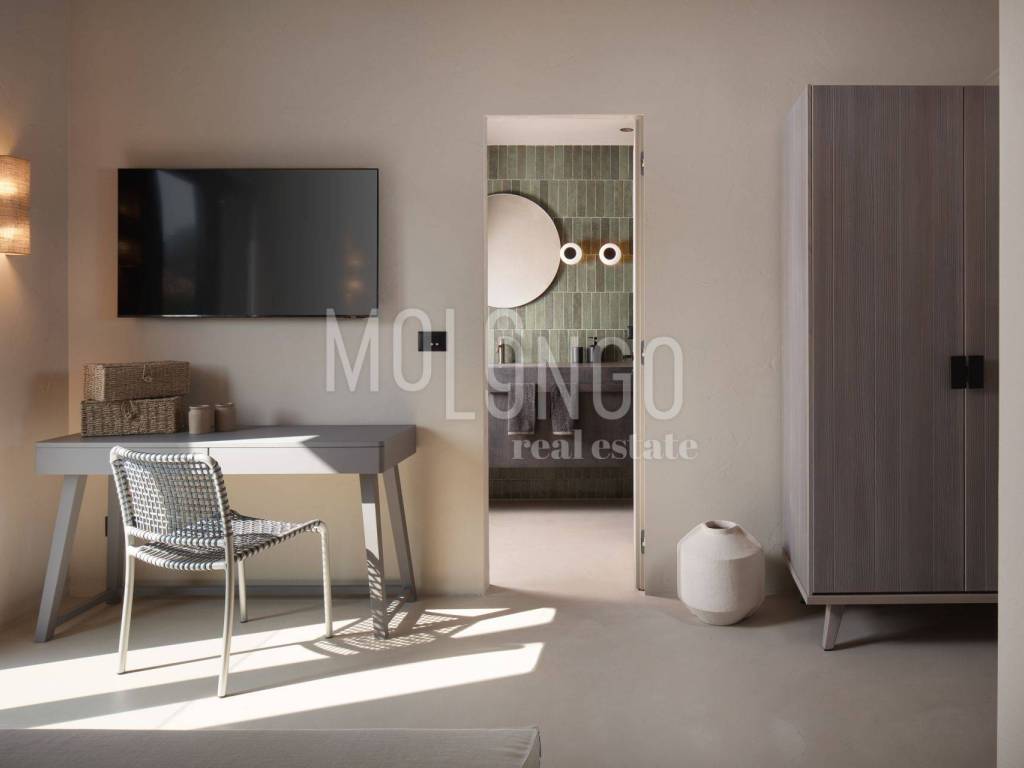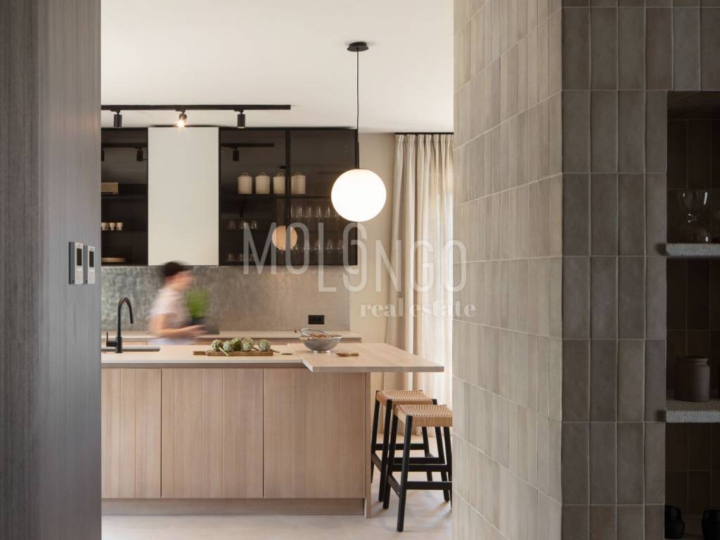 floor covering microtopping, Italian furniture and lighting and top-quality equipment in the interior as well as in the exterior are the main ones