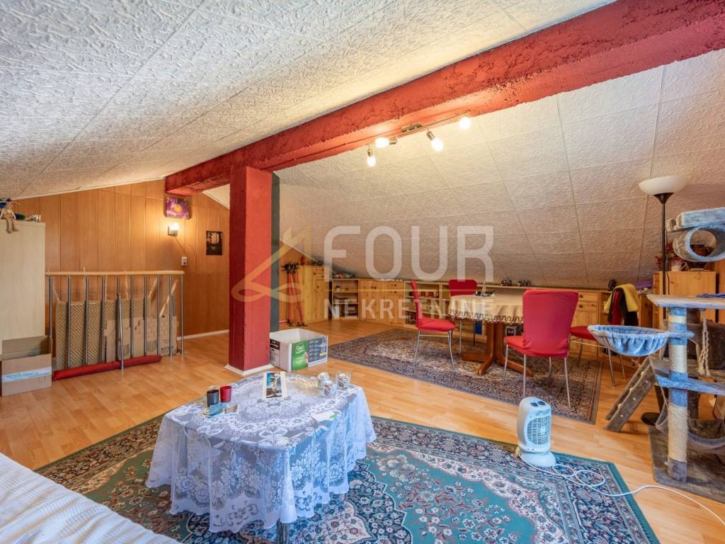 The apartment is directly connected to the attic (for use!) which is furnished and used as an additional room, effectively forming a two-level apartment.