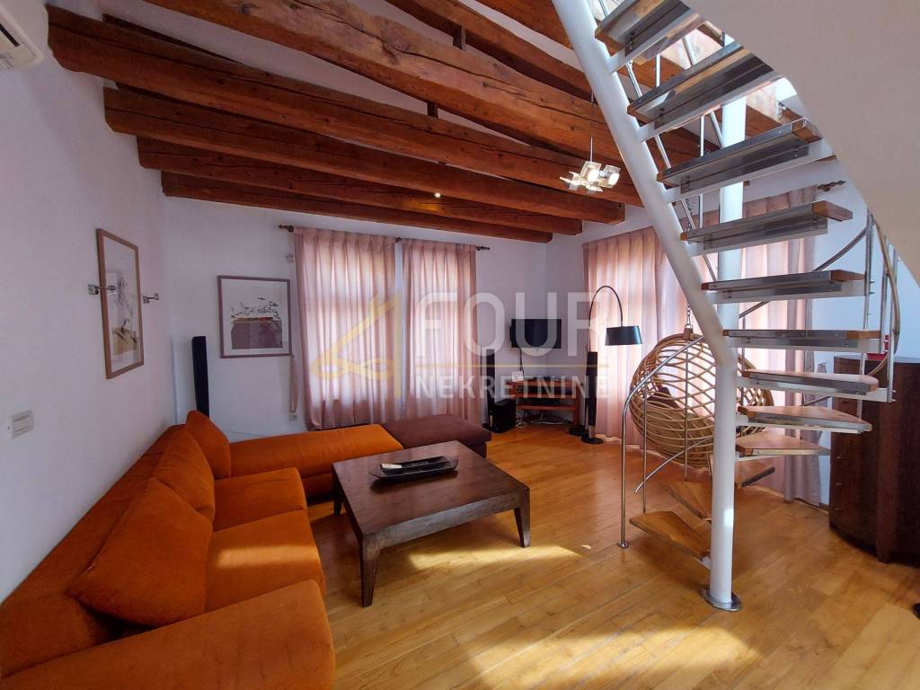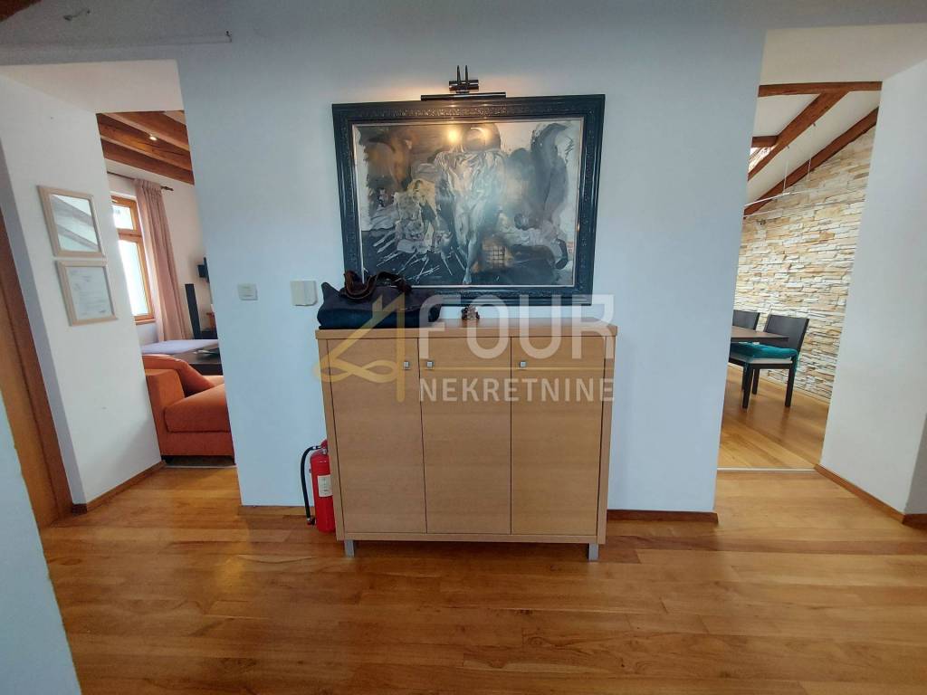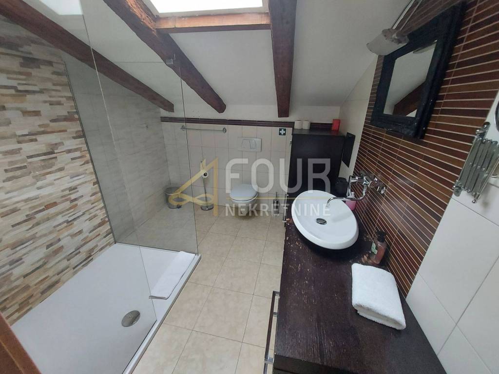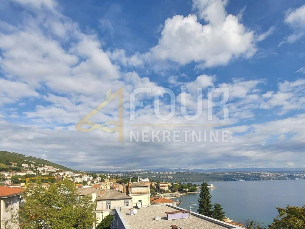 We offer a very special two-room apartment with a living room in the very center of Opatija, with an area of 121.93 m2. The apartment is located on the top floor (penthouse) with its own terrace of 10 m2 and a wonderful view of the sea. One part of the apartment (living room) is of normal height, and the other parts of the apartment are on slopes. The property has a soul, the apartment is really special and has a lot of potential. The villa has its own parking lot and garden. Only 5 minutes on foot from the Opatija Promenade.