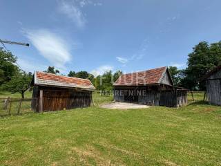 The property also includes three auxiliary buildings – a garage, a hay barn, and a stable – offering additional flexibility and space for various uses.