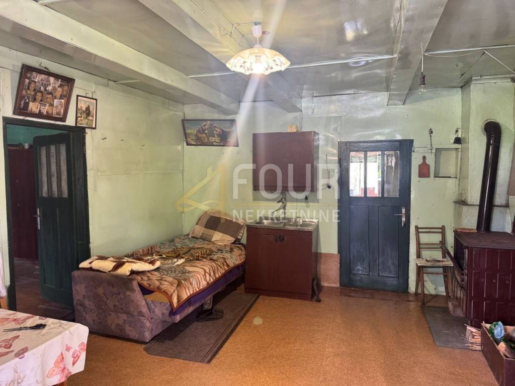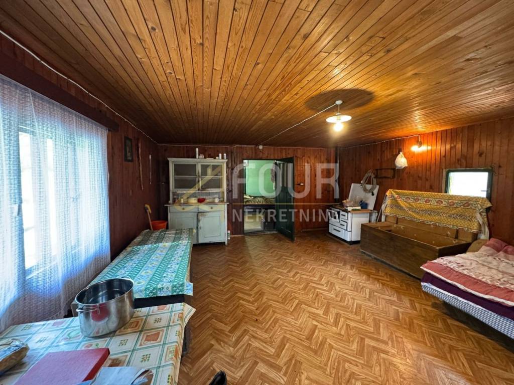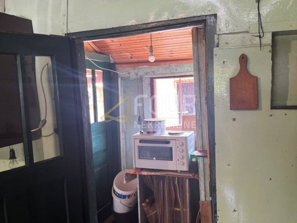 The habitable detached house consists of a basement, kitchen, bathroom, and two bedrooms.