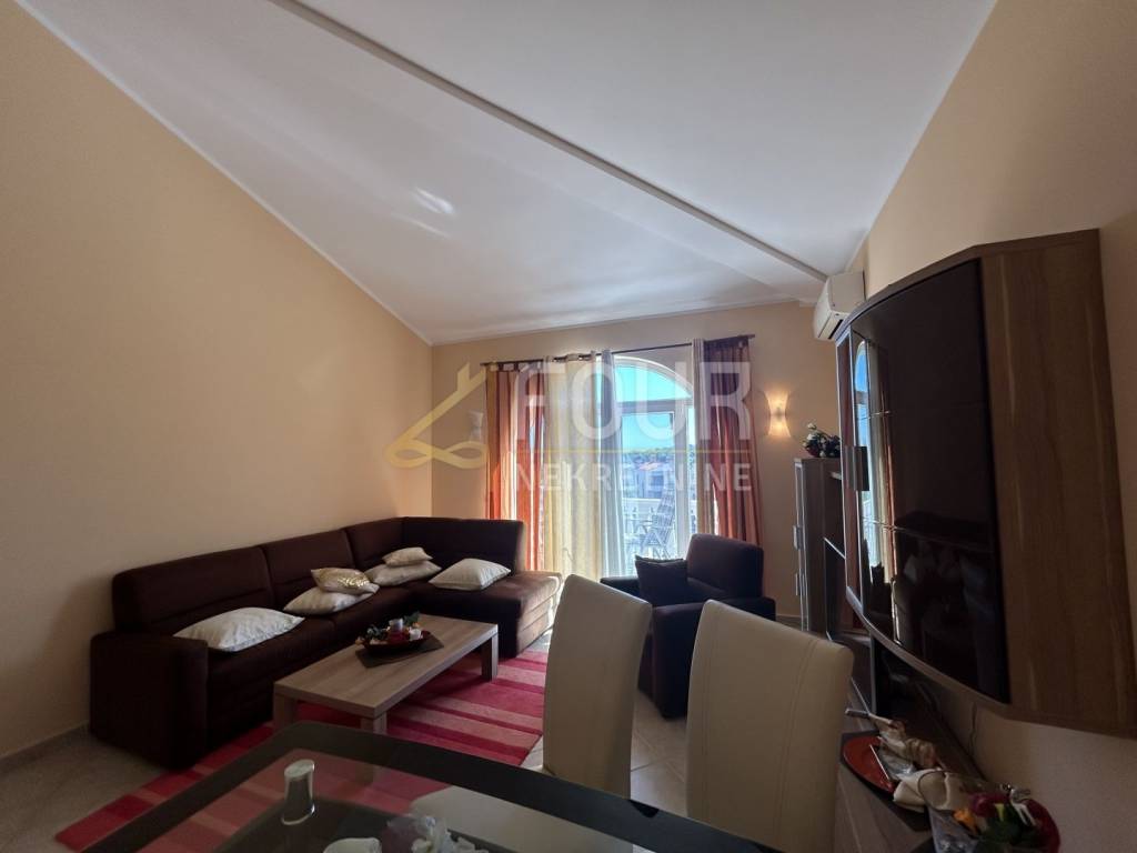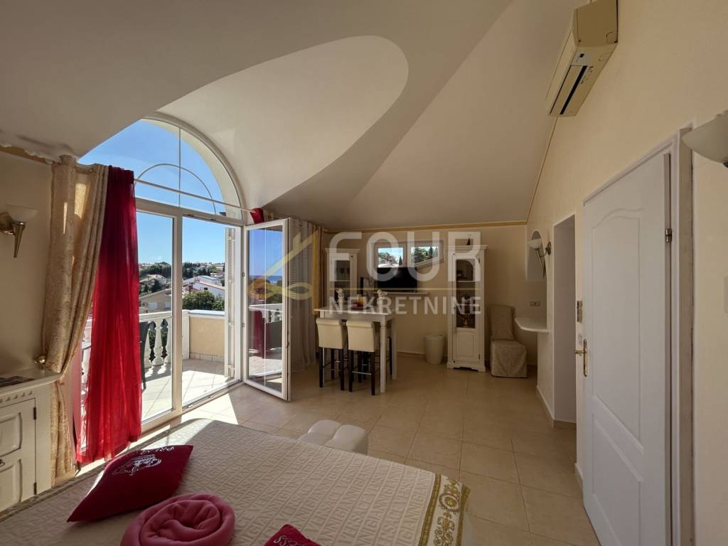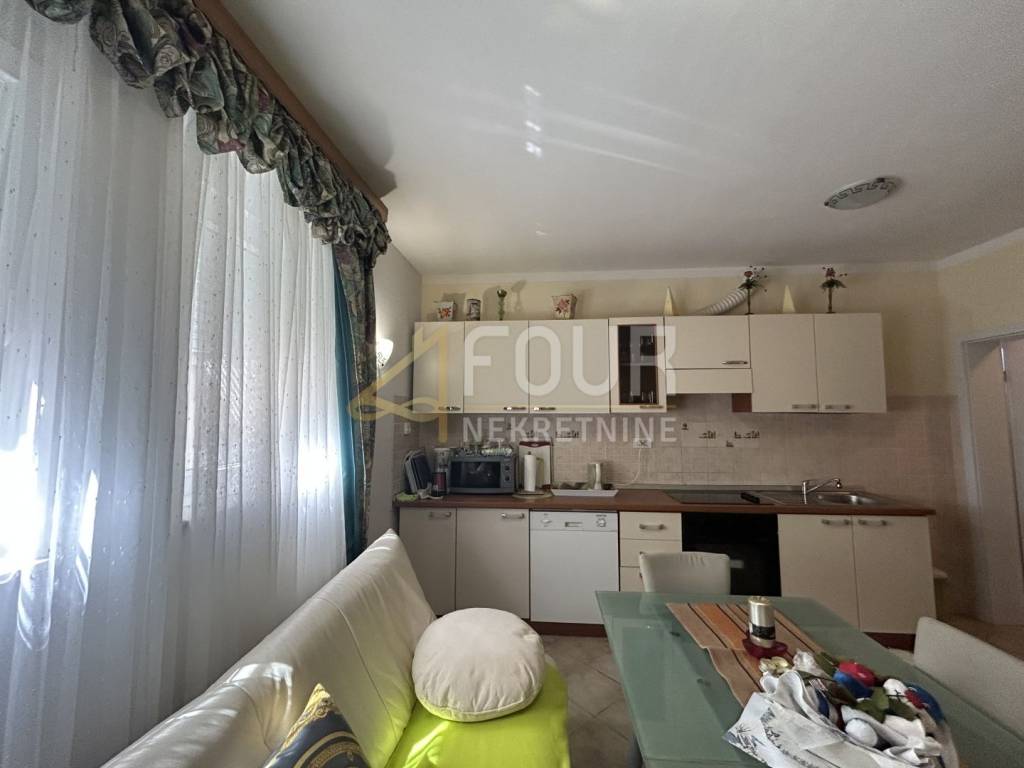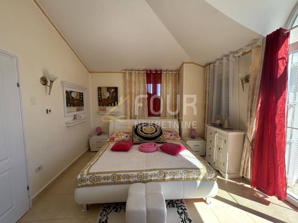 The first floor consists of two apartments with a total area of 112.8 m², each with two balconies – a larger one in the bedroom and a smaller one in the living room. The second floor houses a smaller yet attractive studio apartment of 44 m² with a 7 m² balcony and the best sea view. The apartments are connected by an internal staircase, and the property provides five parking spaces in front of the house along with an additional garage.