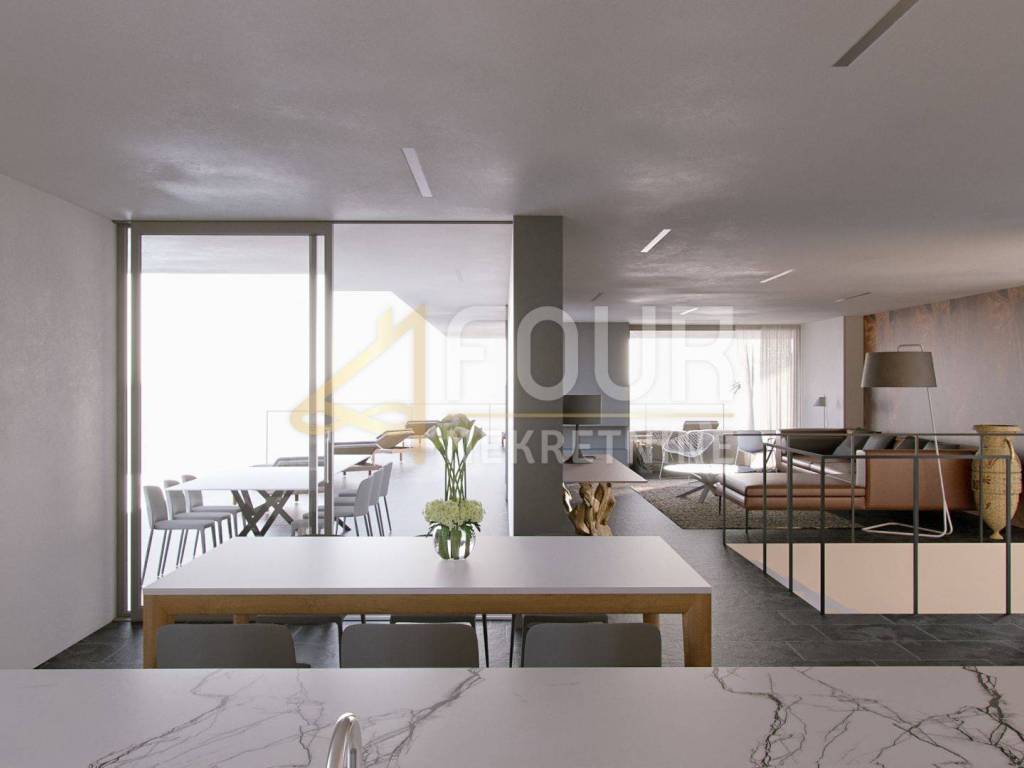We offer a modern villa with a pool that is currently under construction, 150-200 meters from the sea. The villa is spread over two floors, the ground floor and the first floor with a total area of 350 m2, of which the ground floor has a total area of 220 m2 and the first floor has a total area of 130 m2. This beautiful villa consists of three bedrooms, each with its own bathroom and access to a spacious terrace. There is also a hallway with storage and a staircase leading to the first floor. The villa also has a room for a wellness oasis. The first floor consists of a large open space that connects the living room, kitchen and dining room, with access to the terrace with the pool. There is also a toilet on the first floor. The villa will be equipped with top quality materials and modern design. The equipment includes PVC/alu carpentry in anthracite color with a sliding and wing system, a 10 cm thick demit facade (the facade will be made in white/terracotta color, artistically finished to provide an aesthetic impression), underfloor heating. Security will be ensured through building video surveillance and an alarm system. The villa will also have a swimming pool ideal for refreshing on hot summer days and a parking space for 3 cars.