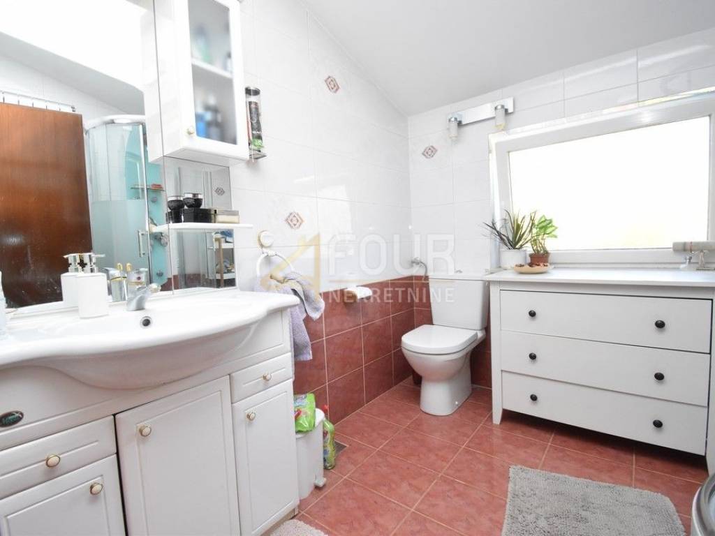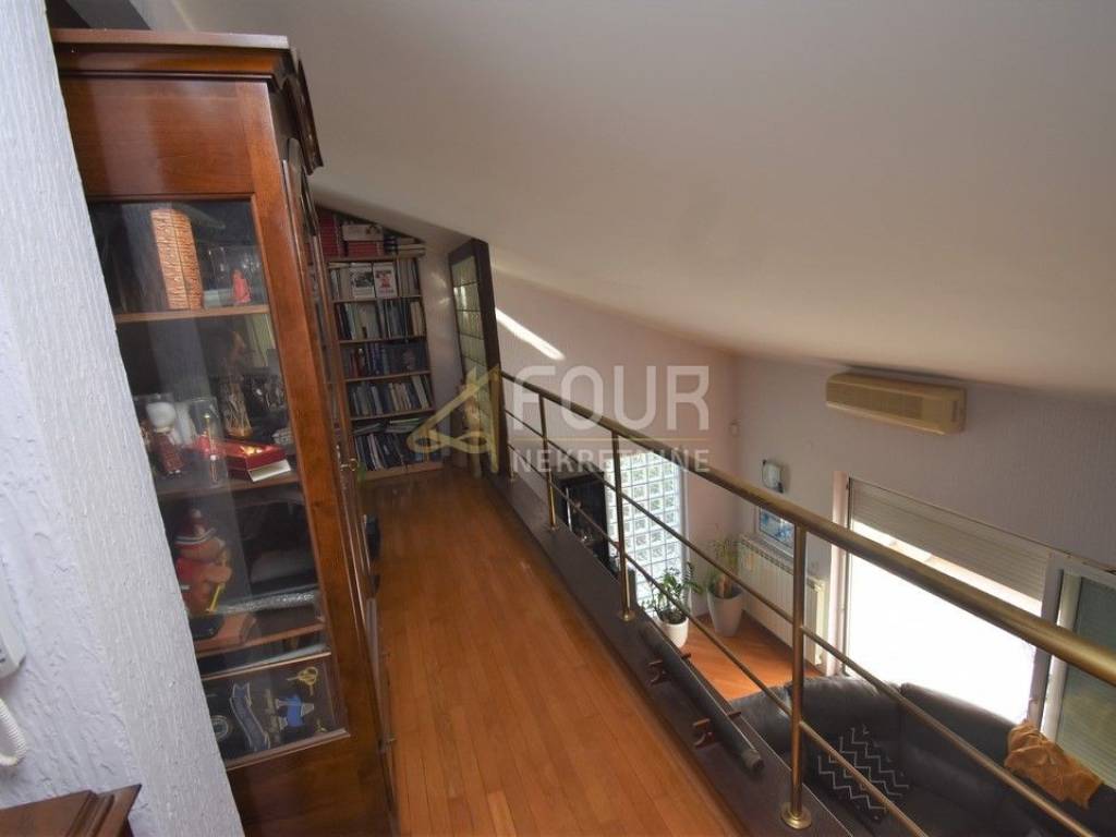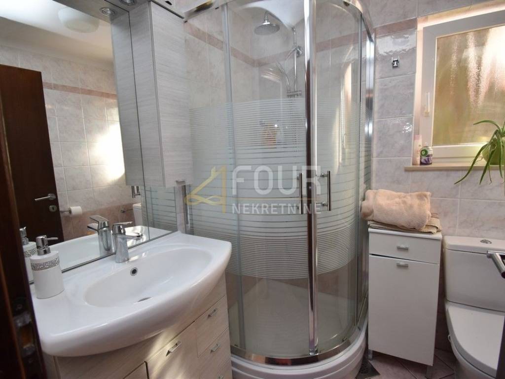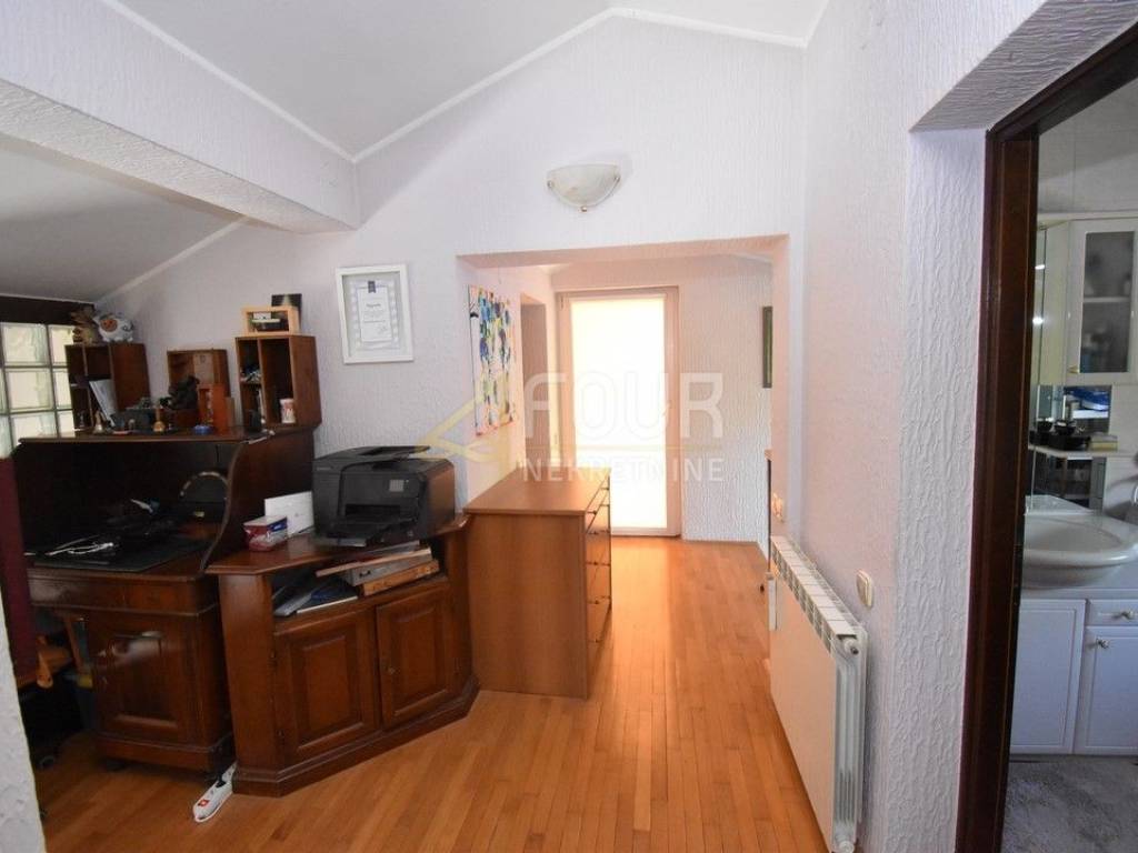 The house itself consists of two apartments. On the ground floor is an apartment of 70 m2 that is not furnished. There is a spacious two-story apartment on the first floor. In the lower part there is a kitchen and dining room and a spacious living room with an exit to the terrace with a view of the sea, one bedroom, a study and a bathroom and toilet. On the upper floor there is a walk-in closet, a bathroom, one bedroom with a balcony and a gallery as a reading or working area.