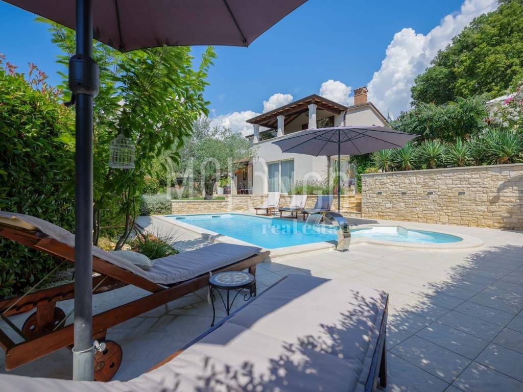 On the outside, there is a 24 m² swimming pool with a hydromassage corner and deckchairs for sunbathing, a children's park (swings, see-saw and slide for children), charcoal grill. The yard is completely fenced and has private parking for 3 or more vehicles.