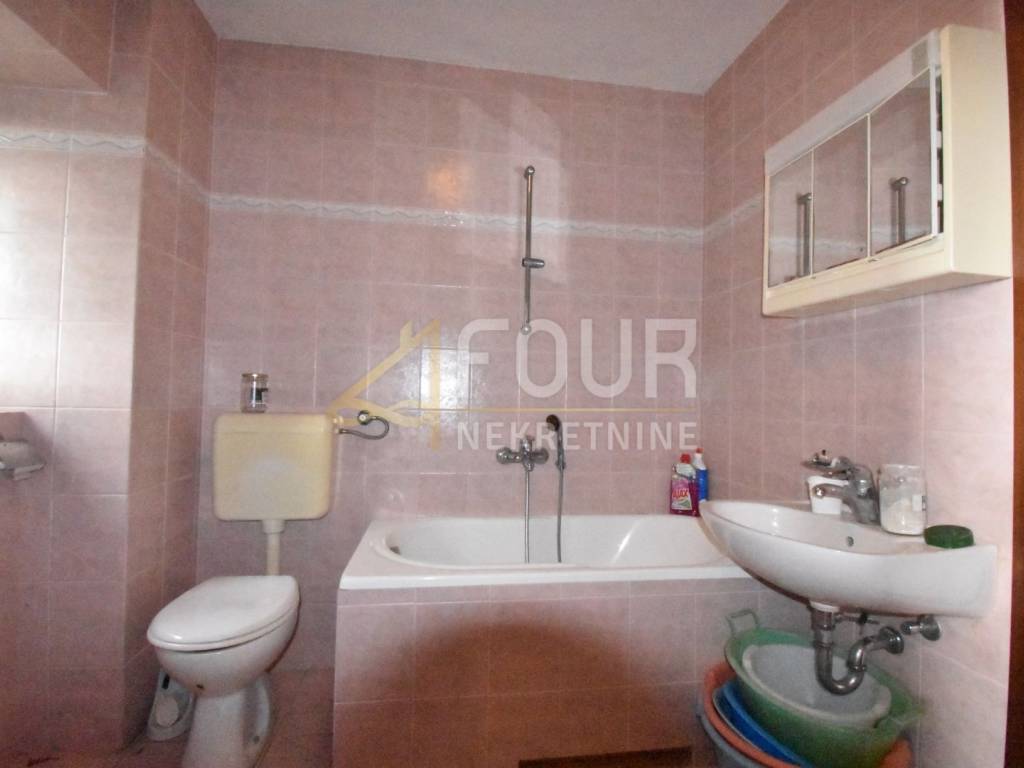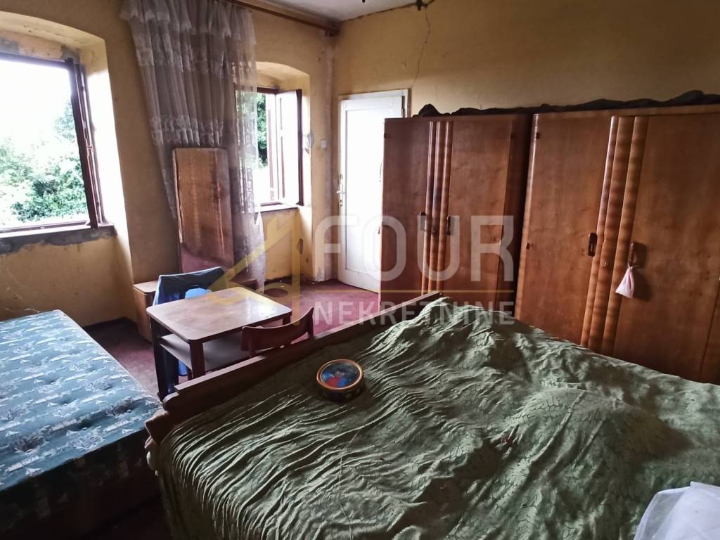 A detached stone house approximately one hundred years old is for sale, situated on a plot of 1,260 m² within the construction zone, which allows for the possibility of building an additional structure. It extends over two floors with a total area of 146 m², and thanks to its location and southern orientation, it offers a beautiful view of the sea and surrounding nature.